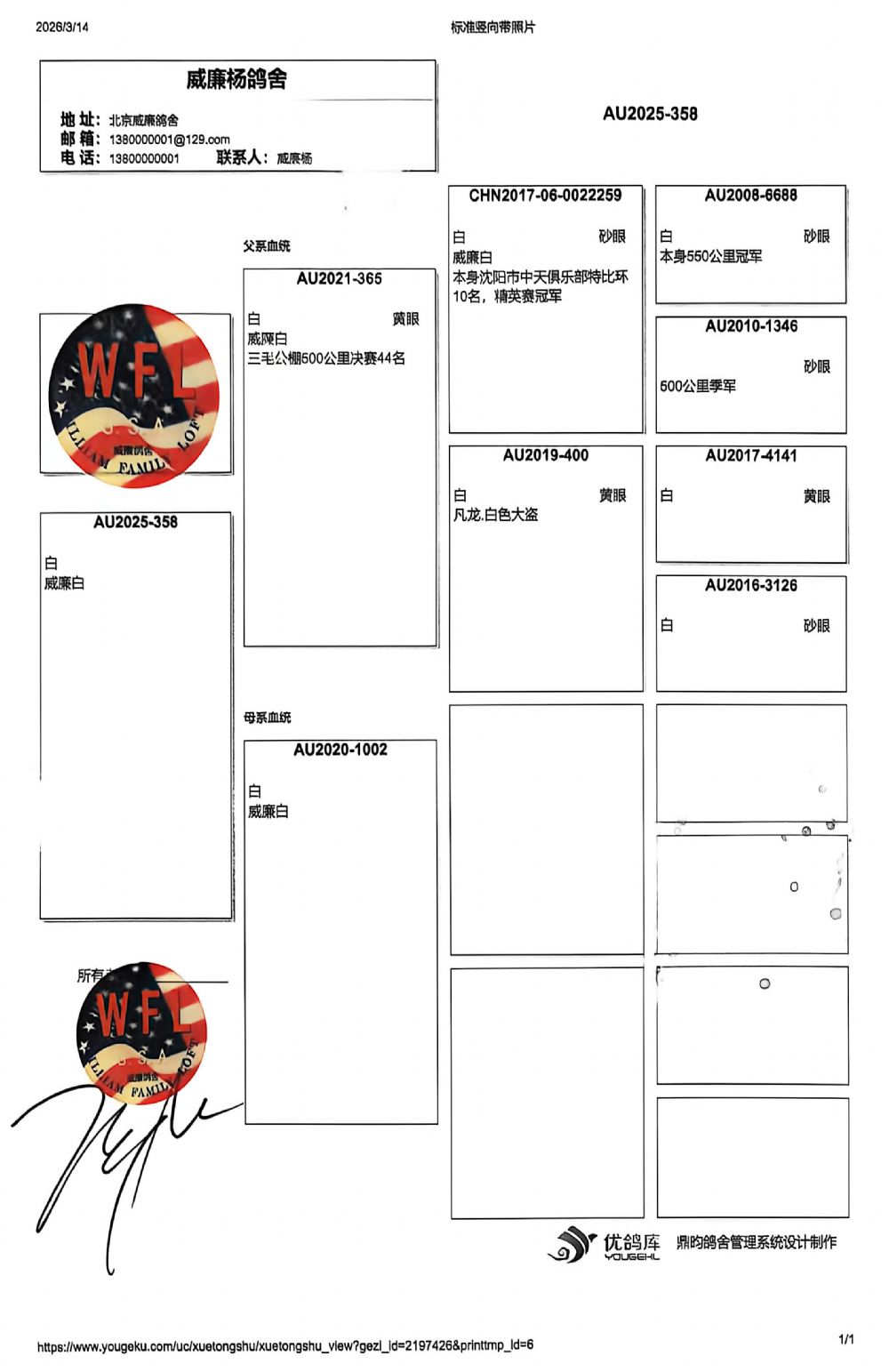 血统书随鸽发送