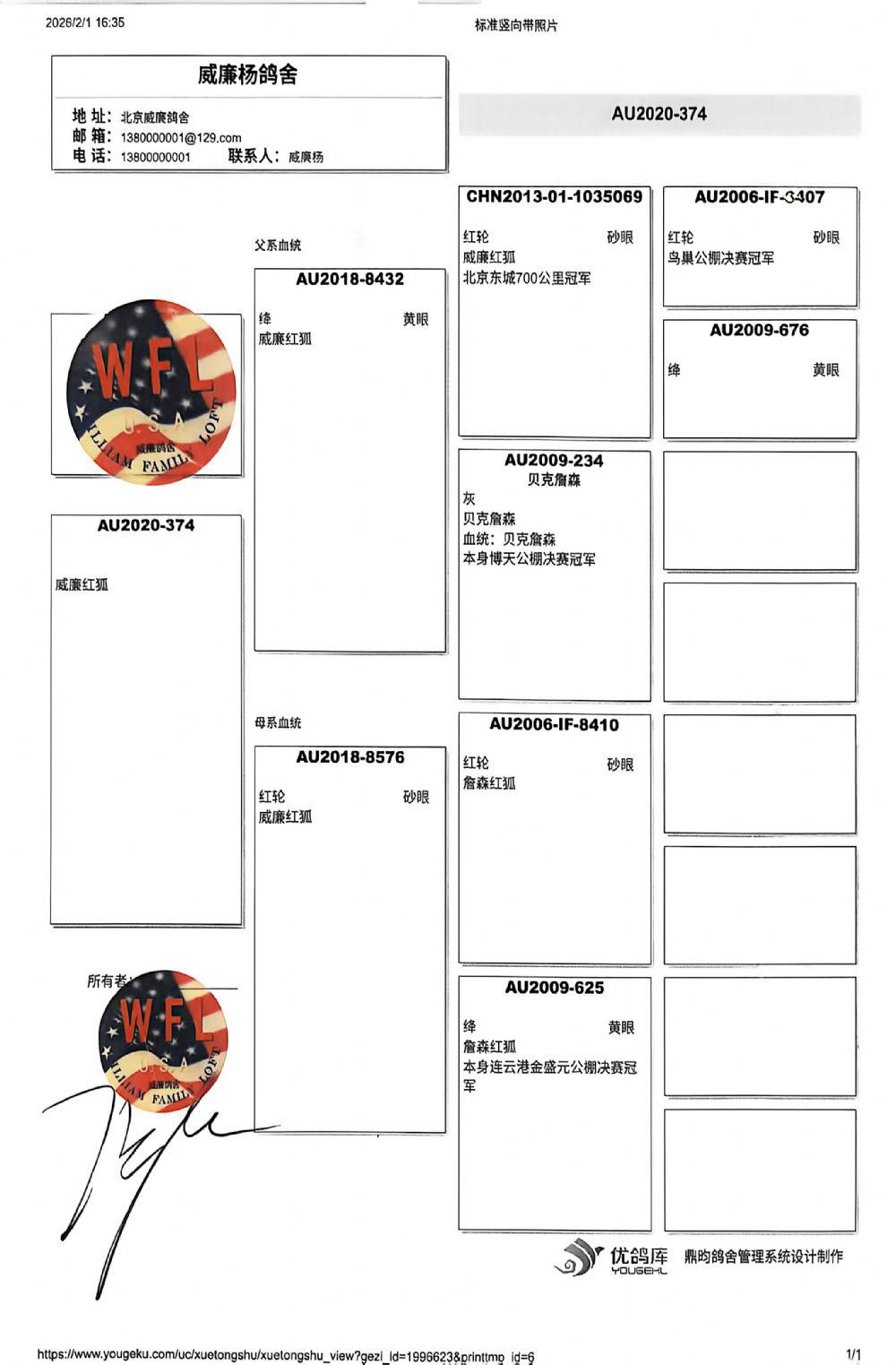 1660978 金环种鸽 威廉红狐116 ¥1000元 0次