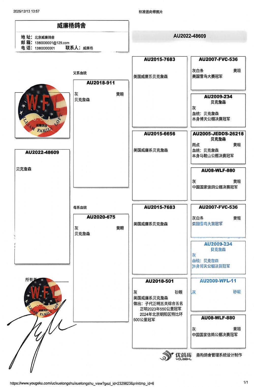 血统书随鸽发送