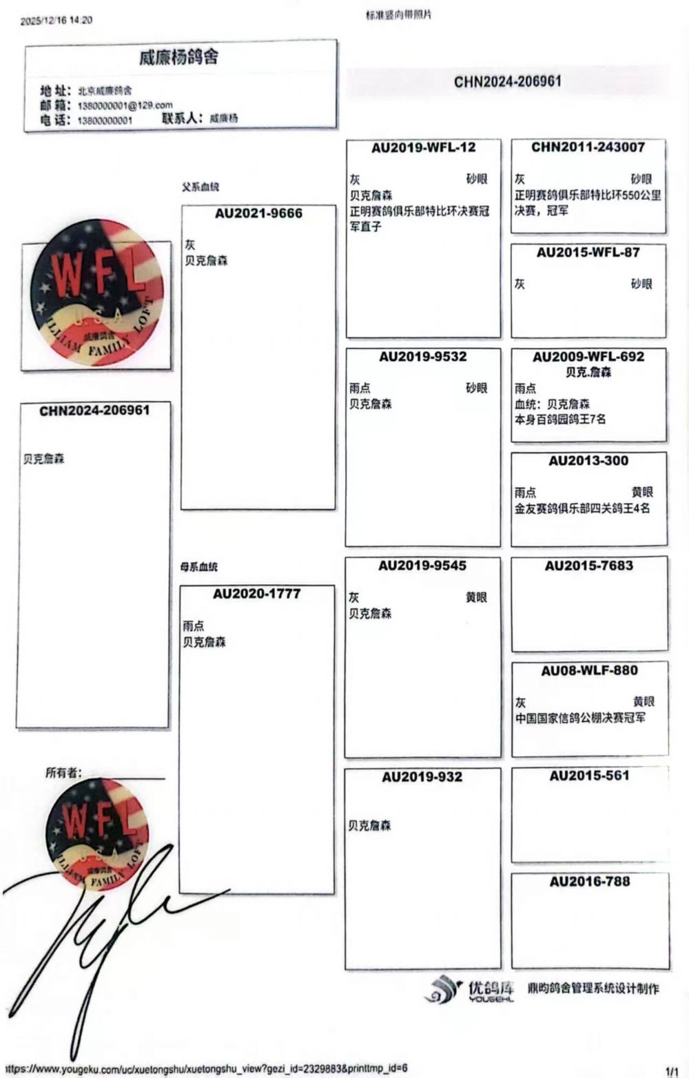 血统书随鸽发送