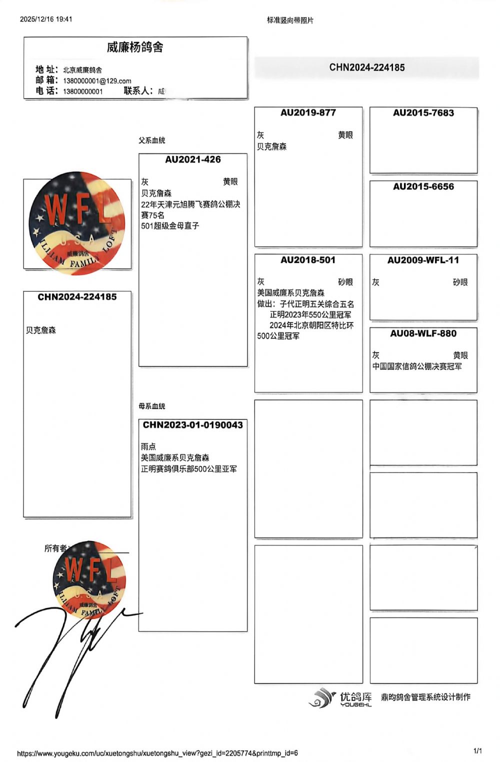 血统书随鸽发送