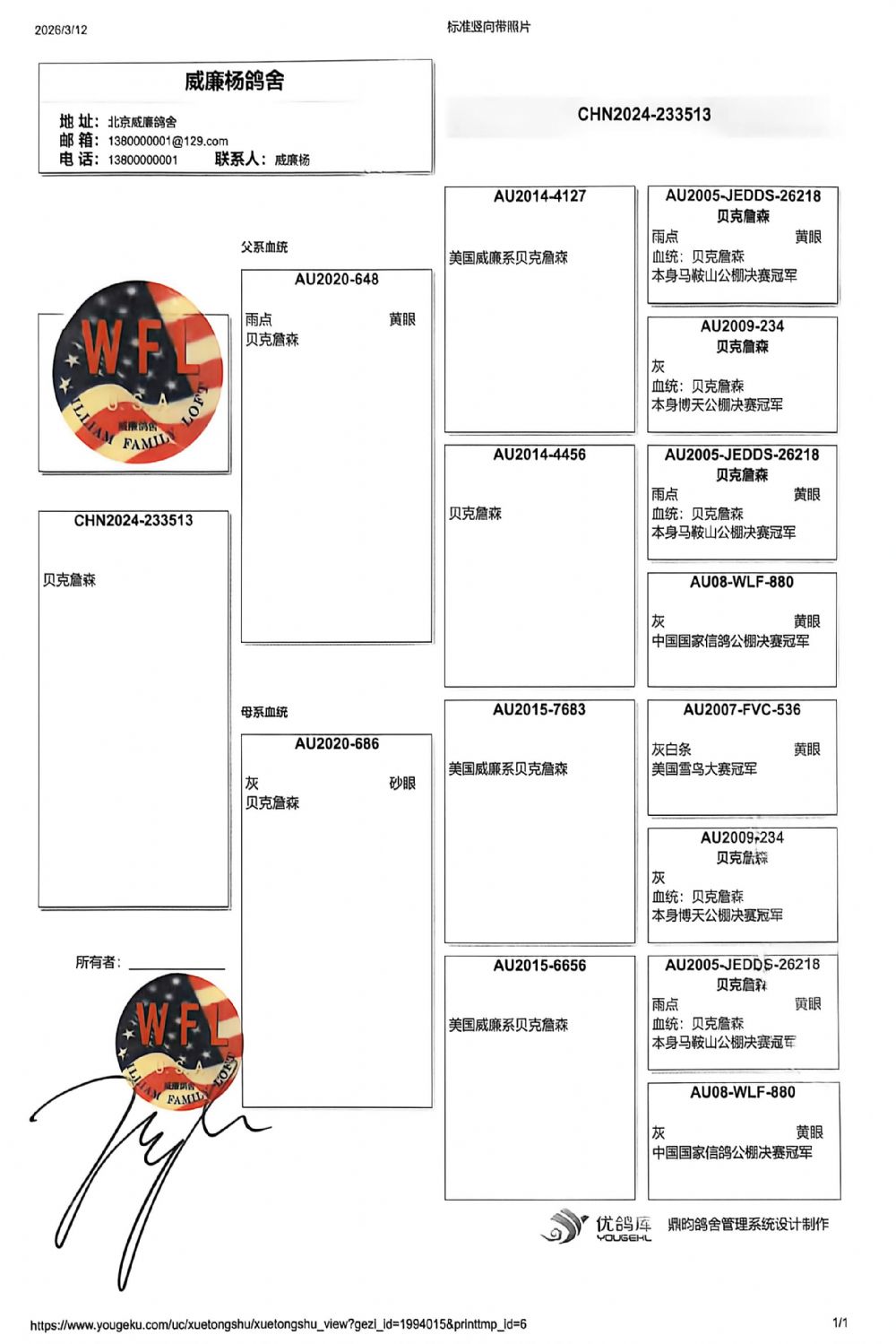 血统书随鸽发送