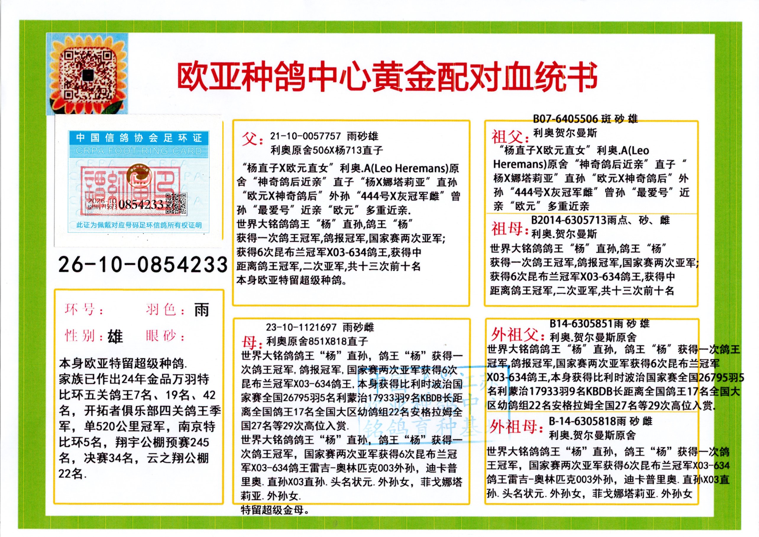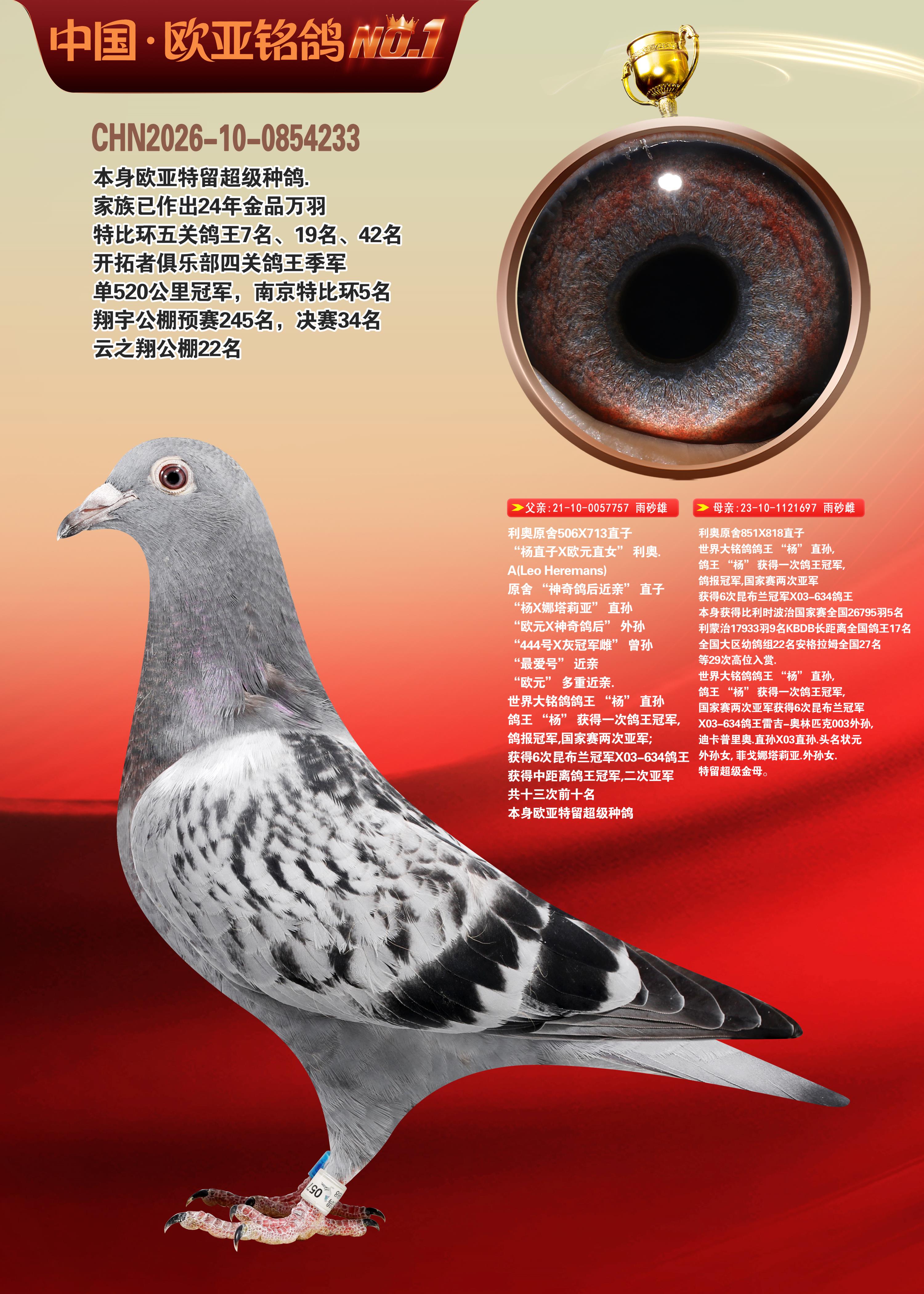 24年秋南京特比环欧亚荣获大团体冠军.小团体冠军551公里大特比13名.14名.16名.19名.20名.21名.24名.26名.27名.28名.42名.52名.54名.57名.65名.66名.68名.70名.71名.72名.74名.76名.80名.82名.83名.84名.85名.86名.90名.92名.110名.116名.121名.122名.128名.131名.158名.161名.164名.165名.166名.172名.174名.177名.182名.195名.196名.201名.205名.208名.210名.216名.253名.269名.275名.276名.294名.296名.299名,,24年秋云南天南铜都公棚决赛415名.天南铜都小棚决赛409名.云南玉活公棚决赛102名.490名.团体32名上笼二羽进二羽,天南铜都大棚506公里决赛445名。热烈祝贺河北省巨鹿县李兰生老师用欧亚泰山号血系连续十一年夺冠军,河北省国家赛冠军.全国季军等多次前十名高位,扬州王军王总用欧亚利奥24年春季获山东翔宇公棚决赛33名盖比53名。南京刘正龙刘总用欧亚盖比获得24年秋山东潍坊国际公棚决赛42名.精英赛30名.三关鸽王71名.决赛86名.加站赛16名.南京市特比环A组鸽王9名.B组鸽王5名.6名.C组鸽王5名.精英赛冠军4名.技能赛A组冠军4名.5名.秦淮区特比环荣获15名.46名.48名.87名。四川西昌徐亮徐总用欧亚利奥获得凉山州聚友决赛177名.第二关亚军双关鸽王19名.三关鸽王105名.云南豪庭公棚决赛603名。热烈祝贺24年四川重庆翔园鸽舍用欧亚泰山号荣获春季400公里冠军.秋季500公里冠军,河北王总用詹森X利奥获得千羽千翔公棚400公里冠军,广东蔡楷焕荣获24年秋爱好者 赛鸽俱乐部三关鸽王季军.一关420公里99名.二关450公里11名.三关520公里32名.单关季军.7名.12名,江西李卫兴荣获贵州红枫公棚8名.共翔俱乐部寄养棚四关综合鸽王30名.一关400公里78名.二关500公里55名.三关520公里37名.四关500公里57名.同父母获公棚18名.雷鸣获得武汉黄浦育翔中心冠军,四川陈文获得四川明鸿俱乐部300公里梦幻2名.3名.4名.9名.10名.13名.14名.15名.31名.34名.40名.41名.42名.43名.69名.71名.72名.73名.74名.94名.95名.97名.98名.99名.419公里决赛荣获总冠军7名.总共归巢9羽,四川徐亮获豪庭决赛603名,山西郑勇获得山西泰鑫公棚决赛255名詹森红狐,热烈祝贺马总获得开尔(飞跃队)决赛9名获奖金1310000万元.第一关52名,天津津福资赛180公里96名.获奖金429543万元,欧亚支持全国鸽友24年秋多人报喜 祝大家取得更好成绩,给欧亚报喜鸽友欧亚决定给每人赠送一羽超级种鸽。欧亚俱乐部特比环多关鸽王成绩:15年秋淮安特比环黑色星期一全会上笼9700多羽,当天无鸽归巢,第二天全会归巢357羽,本舍归巢158羽.前十名八羽.前一百名归巢57羽,16年春季获五关鸽王总冠军,总亚军四名.六名.七名.九名.十名.晶艺俱乐部520公里冠亚季军5名.6名.7名.9名.11名等,火车头冠军.季军6名.8名.9名.10名,16年秋晶艺俱乐部特比环520公里亚军.季军4名.6名.7名.9名,15年春南京白下特比环冠军.亚军.季军6名.7名.8名.9名.10名.指定鸽A B组获得冠军.亚军.季军4名.5名.,17年淮安特比环亚军.4名.5名.7名.8名.10名.六关鸽王总冠军.4名.6名.9名.10名,寄养棚宿迁刘总20羽特比环获冠军.季军.4名.7名.8名.9名等。18年荣获万羽特比环六关鸽王总冠军.总亚军.总季军.6名.8名.十名.单关四羽冠军.二羽亚军.四羽季军.前十名27羽。19年秋万羽特比环六关鸽王总亚军.总季军.5名.8名等,单关二羽冠军.三羽亚军.一羽季军前十名31羽。20年秋淮安市鸽会四关特比环大赛风雨无阻鸽王亚军.鸽王六名,金品俱乐部万羽特比环六关鸽王总冠军,总亚军.四名.五名.六名.七名.八名.十名.前二百名鸽王35羽,单关冠亚季军前十名四十多羽,火车头五关鸽王季军.六名.八名.前二百名鸽王十七羽。20年春荣获淮安五区一市四关鸽王总冠军.亚军.四名.八名.九名。21年秋荣获金品万羽特比环大赛六关鸽王总亚军.总季军.四名.七名.九名.十名.单关冠亚军季军前十名三十多羽。火车头协会鸽王六名.七名.十名.单关前十名十七羽。22年秋荣获鸽王总冠军.总亚军.5名.7名.8名.9名.11名.单关冠亚季军前十名三十多羽,第一关单关前二百名四十多羽,第二关前二百名三十多羽,第三关前二百名四十多羽,第四关前二百名四十多羽,第五关前一百名53羽。23年秋荣获鸽王季军.五名.八名.十名.13名.17名.20名.27名等多羽鸽王.单关前十名二十多羽。公棚.寄养棚部分成绩:16年秋宁夏黄河公棚总冠军电脑戈马力指定通炮冠军,17年送八羽参赛获得鸽王八名进奖四名,支持韩总荣获八名。支持鸽友荣获宁夏中卫公棚决赛总冠军.精英赛冠军,支持18年宁夏黄河公棚决赛冠军詹森X泰山。安徽鼎博寄养棚院内外四关鸽王总冠军.鸽王十七名.三十七名同窝,鸽王39名.42名.58名.67名。18年山东公棚预赛冠军.决赛65名.送八羽进奖五羽.指定获奔驰汽车一辆。支持鸽友获得云南蓝云公棚冠军.盖比X佛卡门。支持鸽友荣获云南银集公棚决赛冠军 詹森427X520血系 速度赛6700羽冠军。17年荣获金马俱乐部寄养棚四关鸽王总冠军.季军.六名.八名.第一关冠军.亚军.季军四名.七名.十一名.金牌教练奖。支持鸽友18年北京费翔公棚预赛九名电脑X桑杰士,支持鸽友荣获陕西威力公棚决赛11名.内蒙古临河寄养棚四关鸽王六名.詹森配泰山,支持河北王总用欧亚詹森427配胡本喜获20年秋开尔青年棚季军。云南东荣公棚16年预赛冠军.决赛77名.17年决赛12名.詹森红狐X泰山,17年平安公棚决赛4名 詹森427。欧亚获得21年金母寄养棚第一关四名.第二关5名.第三关5名.6名.7名.10名.三关鸽王总冠军,四关鸽王14名.十羽鸽王。支持河