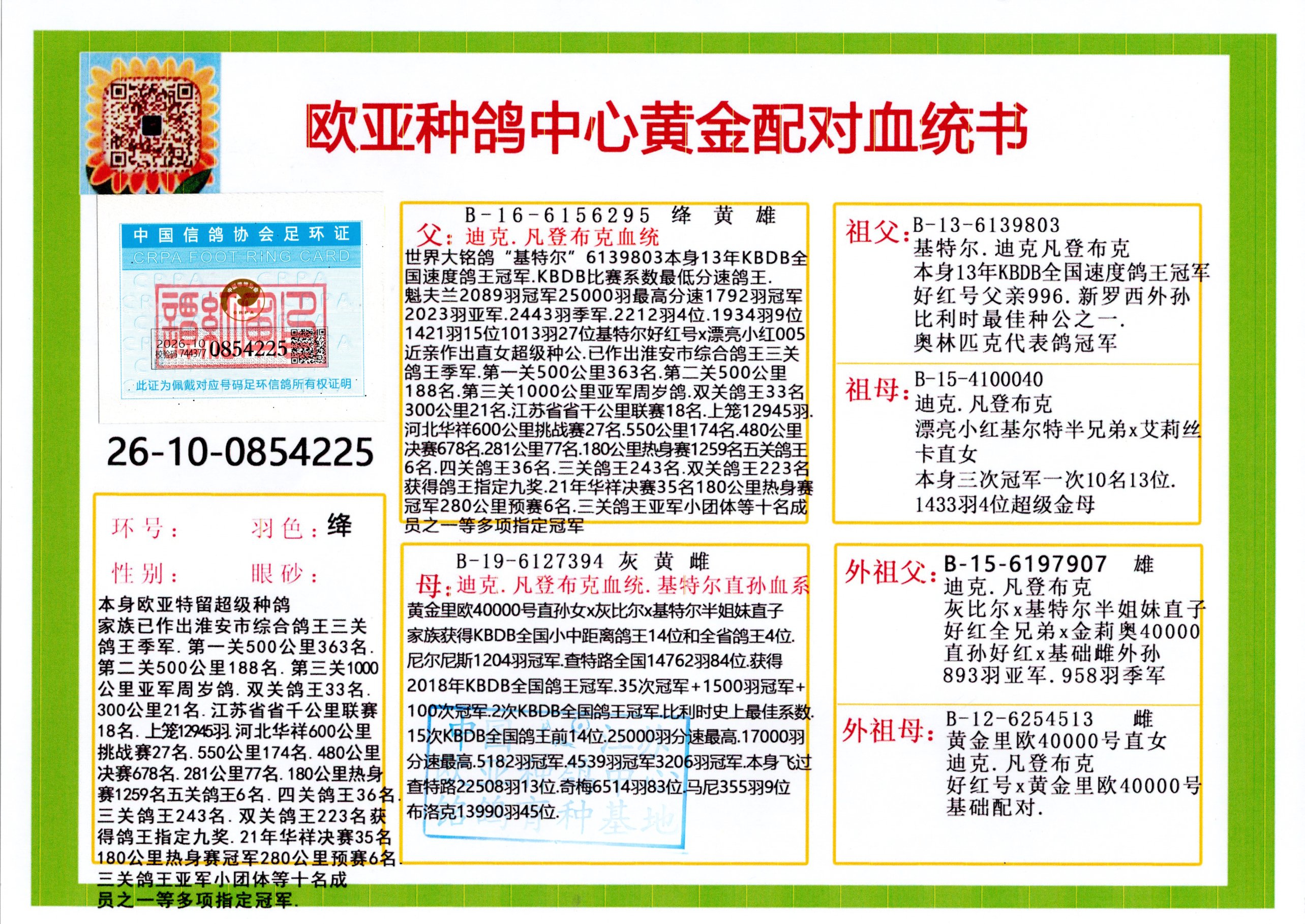 24年秋南京特比环欧亚荣获大团体冠军.小团体冠军551公里大特比13名.14名.16名.19名.20名.21名.24名.26名.27名.28名.42名.52名.54名.57名.65名.66名.68名.70名.71名.72名.74名.76名.80名.82名.83名.84名.85名.86名.90名.92名.110名.116名.121名.122名.128名.131名.158名.161名.164名.165名.166名.172名.174名.177名.182名.195名.196名.201名.205名.208名.210名.216名.253名.269名.275名.276名.294名.296名.299名,,24年秋云南天南铜都公棚决赛415名.天南铜都小棚决赛409名.云南玉活公棚决赛102名.490名.团体32名上笼二羽进二羽,天南铜都大棚506公里决赛445名。热烈祝贺河北省巨鹿县李兰生老师用欧亚泰山号血系连续十一年夺冠军,河北省国家赛冠军.全国季军等多次前十名高位,扬州王军王总用欧亚利奥24年春季获山东翔宇公棚决赛33名盖比53名。南京刘正龙刘总用欧亚盖比获得24年秋山东潍坊国际公棚决赛42名.精英赛30名.三关鸽王71名.决赛86名.加站赛16名.南京市特比环A组鸽王9名.B组鸽王5名.6名.C组鸽王5名.精英赛冠军4名.技能赛A组冠军4名.5名.秦淮区特比环荣获15名.46名.48名.87名。四川西昌徐亮徐总用欧亚利奥获得凉山州聚友决赛177名.第二关亚军双关鸽王19名.三关鸽王105名.云南豪庭公棚决赛603名。热烈祝贺24年四川重庆翔园鸽舍用欧亚泰山号荣获春季400公里冠军.秋季500公里冠军,河北王总用詹森X利奥获得千羽千翔公棚400公里冠军,广东蔡楷焕荣获24年秋爱好者 赛鸽俱乐部三关鸽王季军.一关420公里99名.二关450公里11名.三关520公里32名.单关季军.7名.12名,江西李卫兴荣获贵州红枫公棚8名.共翔俱乐部寄养棚四关综合鸽王30名.一关400公里78名.二关500公里55名.三关520公里37名.四关500公里57名.同父母获公棚18名.雷鸣获得武汉黄浦育翔中心冠军,四川陈文获得四川明鸿俱乐部300公里梦幻2名.3名.4名.9名.10名.13名.14名.15名.31名.34名.40名.41名.42名.43名.69名.71名.72名.73名.74名.94名.95名.97名.98名.99名.419公里决赛荣获总冠军7名.总共归巢9羽,四川徐亮获豪庭决赛603名,山西郑勇获得山西泰鑫公棚决赛255名詹森红狐,热烈祝贺马总获得开尔(飞跃队)决赛9名获奖金1310000万元.第一关52名,天津津福资赛180公里96名.获奖金429543万元,欧亚支持全国鸽友24年秋多人报喜 祝大家取得更好成绩,给欧亚报喜鸽友欧亚决定给每人赠送一羽超级种鸽。欧亚俱乐部特比环多关鸽王成绩:15年秋淮安特比环黑色星期一全会上笼9700多羽,当天无鸽归巢,第二天全会归巢357羽,本舍归巢158羽.前十名八羽.前一百名归巢57羽,16年春季获五关鸽王总冠军,总亚军四名.六名.七名.九名.十名.晶艺俱乐部520公里冠亚季军5名.6名.7名.9名.11名等,火车头冠军.季军6名.8名.9名.10名,16年秋晶艺俱乐部特比环520公里亚军.季军4名.6名.7名.9名,15年春南京白下特比环冠军.亚军.季军6名.7名.8名.9名.10名.指定鸽A B组获得冠军.亚军.季军4名.5名.,17年淮安特比环亚军.4名.5名.7名.8名.10名.六关鸽王总冠军.4名.6名.9名.10名,寄养棚宿迁刘总20羽特比环获冠军.季军.4名.7名.8名.9名等。18年荣获万羽特比环六关鸽王总冠军.总亚军.总季军.6名.8名.十名.单关四羽冠军.二羽亚军.四羽季军.前十名27羽。19年秋万羽特比环六关鸽王总亚军.总季军.5名.8名等,单关二羽冠军.三羽亚军.一羽季军前十名31羽。20年秋淮安市鸽会四关特比环大赛风雨无阻鸽王亚军.鸽王六名,金品俱乐部万羽特比环六关鸽王总冠军,总亚军.四名.五名.六名.七名.八名.十名.前二百名鸽王35羽,单关冠亚季军前十名四十多羽,火车头五关鸽王季军.六名.八名.前二百名鸽王十七羽。20年春荣获淮安五区一市四关鸽王总冠军.亚军.四名.八名.九名。21年秋荣获金品万羽特比环大赛六关鸽王总亚军.总季军.四名.七名.九名.十名.单关冠亚军季军前十名三十多羽。火车头协会鸽王六名.七名.十名.单关前十名十七羽。22年秋荣获鸽王总冠军.总亚军.5名.7名.8名.9名.11名.单关冠亚季军前十名三十多羽,第一关单关前二百名四十多羽,第二关前二百名三十多羽,第三关前二百名四十多羽,第四关前二百名四十多羽,第五关前一百名53羽。23年秋荣获鸽王季军.五名.八名.十名.13名.17名.20名.27名等多羽鸽王.单关前十名二十多羽。公棚.寄养棚部分成绩:16年秋宁夏黄河公棚总冠军电脑戈马力指定通炮冠军,17年送八羽参赛获得鸽王八名进奖四名,支持韩总荣获八名。支持鸽友荣获宁夏中卫公棚决赛总冠军.精英赛冠军,支持18年宁夏黄河公棚决赛冠军詹森X泰山。安徽鼎博寄养棚院内外四关鸽王总冠军.鸽王十七名.三十七名同窝,鸽王39名.42名.58名.67名。18年山东公棚预赛冠军.决赛65名.送八羽进奖五羽.指定获奔驰汽车一辆。支持鸽友获得云南蓝云公棚冠军.盖比X佛卡门。支持鸽友荣获云南银集公棚决赛冠军 詹森427X520血系 速度赛6700羽冠军。17年荣获金马俱乐部寄养棚四关鸽王总冠军.季军.六名.八名.第一关冠军.亚军.季军四名.七名.十一名.金牌教练奖。支持鸽友18年北京费翔公棚预赛九名电脑X桑杰士,支持鸽友荣获陕西威力公棚决赛11名.内蒙古临河寄养棚四关鸽王六名.詹森配泰山,支持河北王总用欧亚詹森427配胡本喜获20年秋开尔青年棚季军。云南东荣公棚16年预赛冠军.决赛77名.17年决赛12名.詹森红狐X泰山,17年平安公棚决赛4名 詹森427。欧亚获得21年金母寄养棚第一关四名.第二关5名.第三关5名.6名.7名.10名.三关鸽王总冠军,四关鸽王14名.十羽鸽王。支持河