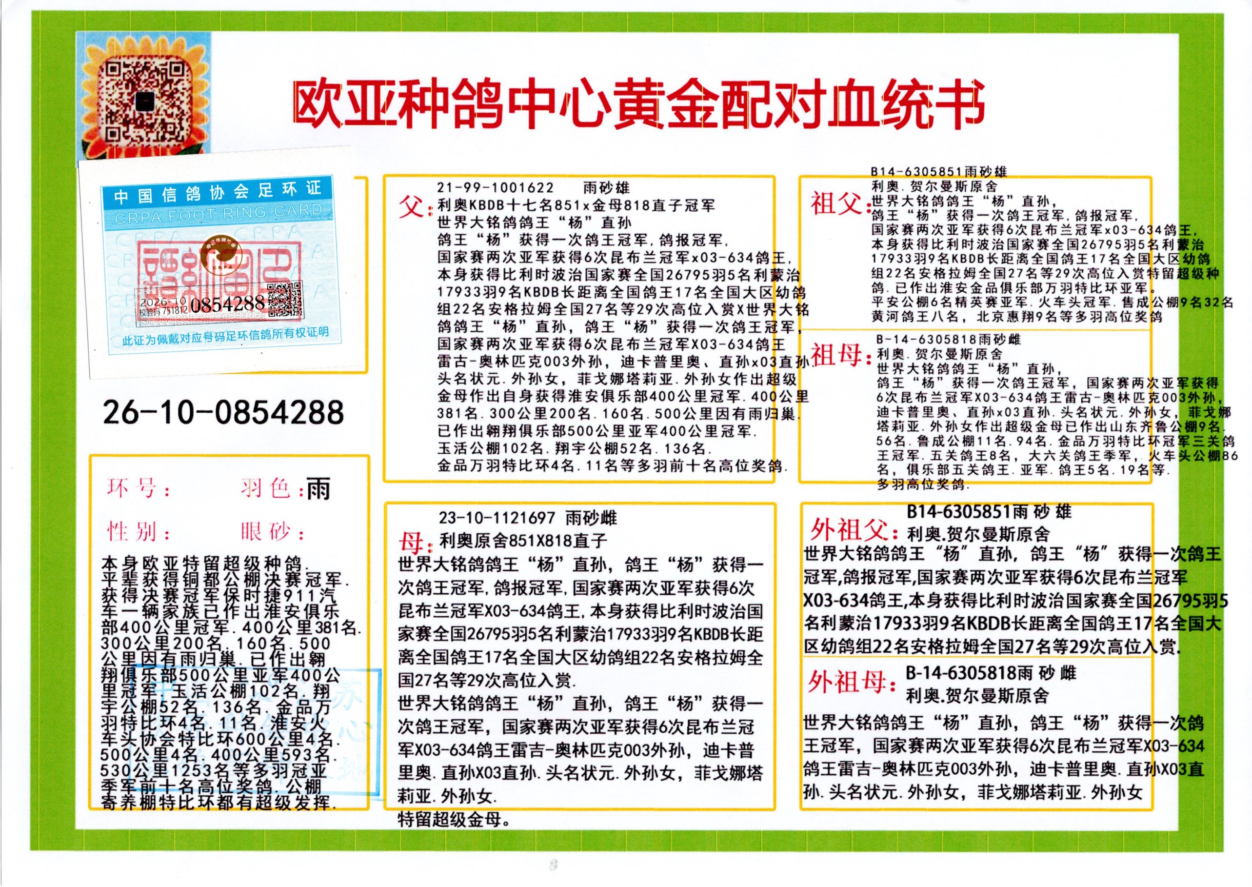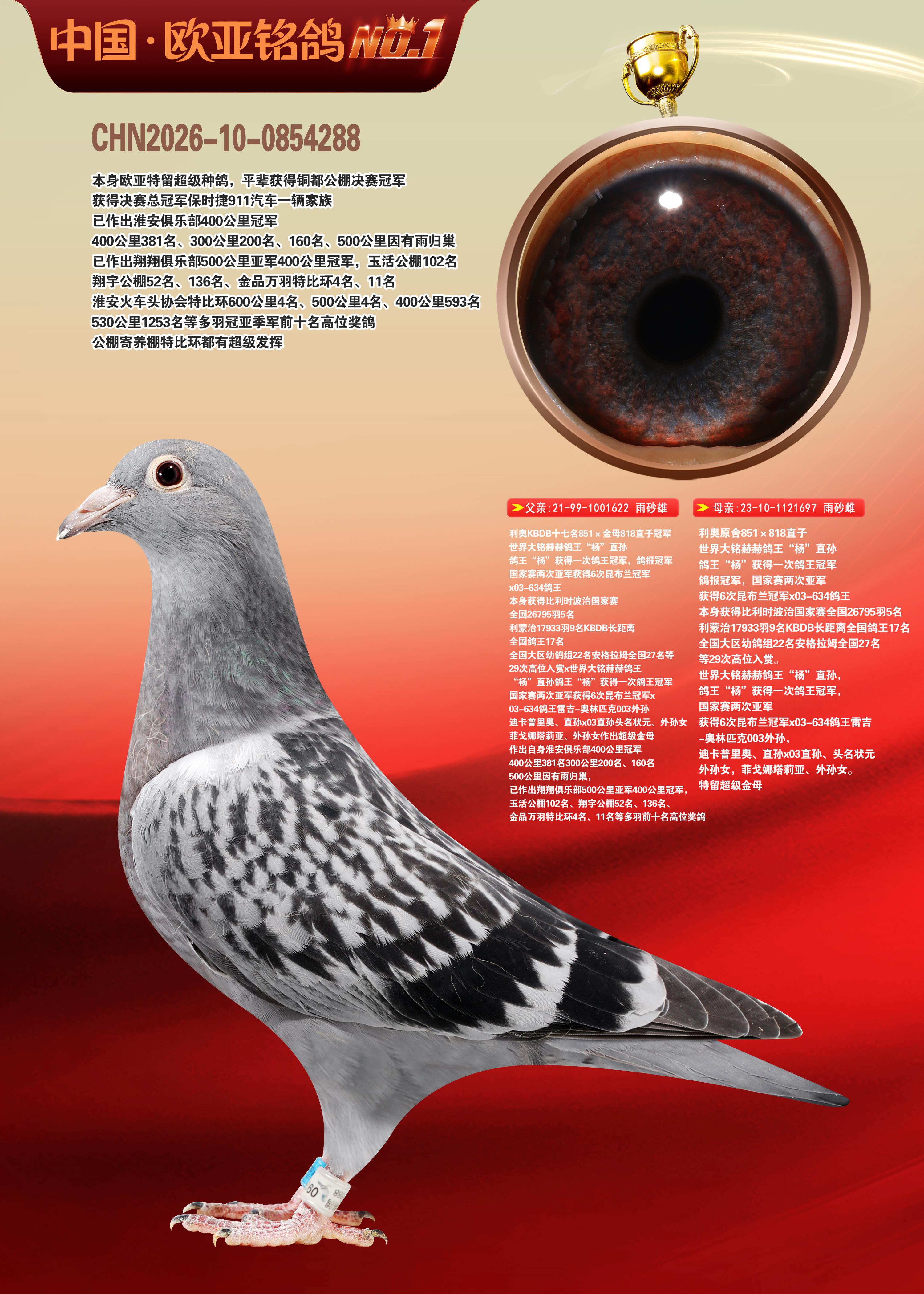 24年秋南京特比环欧亚荣获大团体冠军.小团体冠军551公里大特比13名.14名.16名.19名.20名.21名.24名.26名.27名.28名.42名.52名.54名.57名.65名.66名.68名.70名.71名.72名.74名.76名.80名.82名.83名.84名.85名.86名.90名.92名.110名.116名.121名.122名.128名.131名.158名.161名.164名.165名.166名.172名.174名.177名.182名.195名.196名.201名.205名.208名.210名.216名.253名.269名.275名.276名.294名.296名.299名,,24年秋云南天南铜都公棚决赛415名.天南铜都小棚决赛409名.云南玉活公棚决赛102名.490名.团体32名上笼二羽进二羽,天南铜都大棚506公里决赛445名。热烈祝贺河北省巨鹿县李兰生老师用欧亚泰山号血系连续十一年夺冠军,河北省国家赛冠军.全国季军等多次前十名高位,扬州王军王总用欧亚利奥24年春季获山东翔宇公棚决赛33名盖比53名。南京刘正龙刘总用欧亚盖比获得24年秋山东潍坊国际公棚决赛42名.精英赛30名.三关鸽王71名.决赛86名.加站赛16名.南京市特比环A组鸽王9名.B组鸽王5名.6名.C组鸽王5名.精英赛冠军4名.技能赛A组冠军4名.5名.秦淮区特比环荣获15名.46名.48名.87名。四川西昌徐亮徐总用欧亚利奥获得凉山州聚友决赛177名.第二关亚军双关鸽王19名.三关鸽王105名.云南豪庭公棚决赛603名。热烈祝贺24年四川重庆翔园鸽舍用欧亚泰山号荣获春季400公里冠军.秋季500公里冠军,河北王总用詹森X利奥获得千羽千翔公棚400公里冠军,广东蔡楷焕荣获24年秋爱好者 赛鸽俱乐部三关鸽王季军.一关420公里99名.二关450公里11名.三关520公里32名.单关季军.7名.12名,江西李卫兴荣获贵州红枫公棚8名.共翔俱乐部寄养棚四关综合鸽王30名.一关400公里78名.二关500公里55名.三关520公里37名.四关500公里57名.同父母获公棚18名.雷鸣获得武汉黄浦育翔中心冠军,四川陈文获得四川明鸿俱乐部300公里梦幻2名.3名.4名.9名.10名.13名.14名.15名.31名.34名.40名.41名.42名.43名.69名.71名.72名.73名.74名.94名.95名.97名.98名.99名.419公里决赛荣获总冠军7名.总共归巢9羽,四川徐亮获豪庭决赛603名,山西郑勇获得山西泰鑫公棚决赛255名詹森红狐,热烈祝贺马总获得开尔(飞跃队)决赛9名获奖金1310000万元.第一关52名,天津津福资赛180公里96名.获奖金429543万元,欧亚支持全国鸽友24年秋多人报喜 祝大家取得更好成绩,给欧亚报喜鸽友欧亚决定给每人赠送一羽超级种鸽。欧亚俱乐部特比环多关鸽王成绩:15年秋淮安特比环黑色星期一全会上笼9700多羽,当天无鸽归巢,第二天全会归巢357羽,本舍归巢158羽.前十名八羽.前一百名归巢57羽,16年春季获五关鸽王总冠军,总亚军四名.六名.七名.九名.十名.晶艺俱乐部520公里冠亚季军5名.6名.7名.9名.11名等,火车头冠军.季军6名.8名.9名.10名,16年秋晶艺俱乐部特比环520公里亚军.季军4名.6名.7名.9名,15年春南京白下特比环冠军.亚军.季军6名.7名.8名.9名.10名.指定鸽A B组获得冠军.亚军.季军4名.5名.,17年淮安特比环亚军.4名.5名.7名.8名.10名.六关鸽王总冠军.4名.6名.9名.10名,寄养棚宿迁刘总20羽特比环获冠军.季军.4名.7名.8名.9名等。18年荣获万羽特比环六关鸽王总冠军.总亚军.总季军.6名.8名.十名.单关四羽冠军.二羽亚军.四羽季军.前十名27羽。19年秋万羽特比环六关鸽王总亚军.总季军.5名.8名等,单关二羽冠军.三羽亚军.一羽季军前十名31羽。20年秋淮安市鸽会四关特比环大赛风雨无阻鸽王亚军.鸽王六名,金品俱乐部万羽特比环六关鸽王总冠军,总亚军.四名.五名.六名.七名.八名.十名.前二百名鸽王35羽,单关冠亚季军前十名四十多羽,火车头五关鸽王季军.六名.八名.前二百名鸽王十七羽。20年春荣获淮安五区一市四关鸽王总冠军.亚军.四名.八名.九名。21年秋荣获金品万羽特比环大赛六关鸽王总亚军.总季军.四名.七名.九名.十名.单关冠亚军季军前十名三十多羽。火车头协会鸽王六名.七名.十名.单关前十名十七羽。22年秋荣获鸽王总冠军.总亚军.5名.7名.8名.9名.11名.单关冠亚季军前十名三十多羽,第一关单关前二百名四十多羽,第二关前二百名三十多羽,第三关前二百名四十多羽,第四关前二百名四十多羽,第五关前一百名53羽。23年秋荣获鸽王季军.五名.八名.十名.13名.17名.20名.27名等多羽鸽王.单关前十名二十多羽。公棚.寄养棚部分成绩:16年秋宁夏黄河公棚总冠军电脑戈马力指定通炮冠军,17年送八羽参赛获得鸽王八名进奖四名,支持韩总荣获八名。支持鸽友荣获宁夏中卫公棚决赛总冠军.精英赛冠军,支持18年宁夏黄河公棚决赛冠军詹森X泰山。安徽鼎博寄养棚院内外四关鸽王总冠军.鸽王十七名.三十七名同窝,鸽王39名.42名.58名.67名。18年山东公棚预赛冠军.决赛65名.送八羽进奖五羽.指定获奔驰汽车一辆。支持鸽友获得云南蓝云公棚冠军.盖比X佛卡门。支持鸽友荣获云南银集公棚决赛冠军 詹森427X520血系 速度赛6700羽冠军。17年荣获金马俱乐部寄养棚四关鸽王总冠军.季军.六名.八名.第一关冠军.亚军.季军四名.七名.十一名.金牌教练奖。支持鸽友18年北京费翔公棚预赛九名电脑X桑杰士,支持鸽友荣获陕西威力公棚决赛11名.内蒙古临河寄养棚四关鸽王六名.詹森配泰山,支持河北王总用欧亚詹森427配胡本喜获20年秋开尔青年棚季军。云南东荣公棚16年预赛冠军.决赛77名.17年决赛12名.詹森红狐X泰山,17年平安公棚决赛4名 詹森427。欧亚获得21年金母寄养棚第一关四名.第二关5名.第三关5名.6名.7名.10名.三关鸽王总冠军,四关鸽王14名.十羽鸽王。支持河