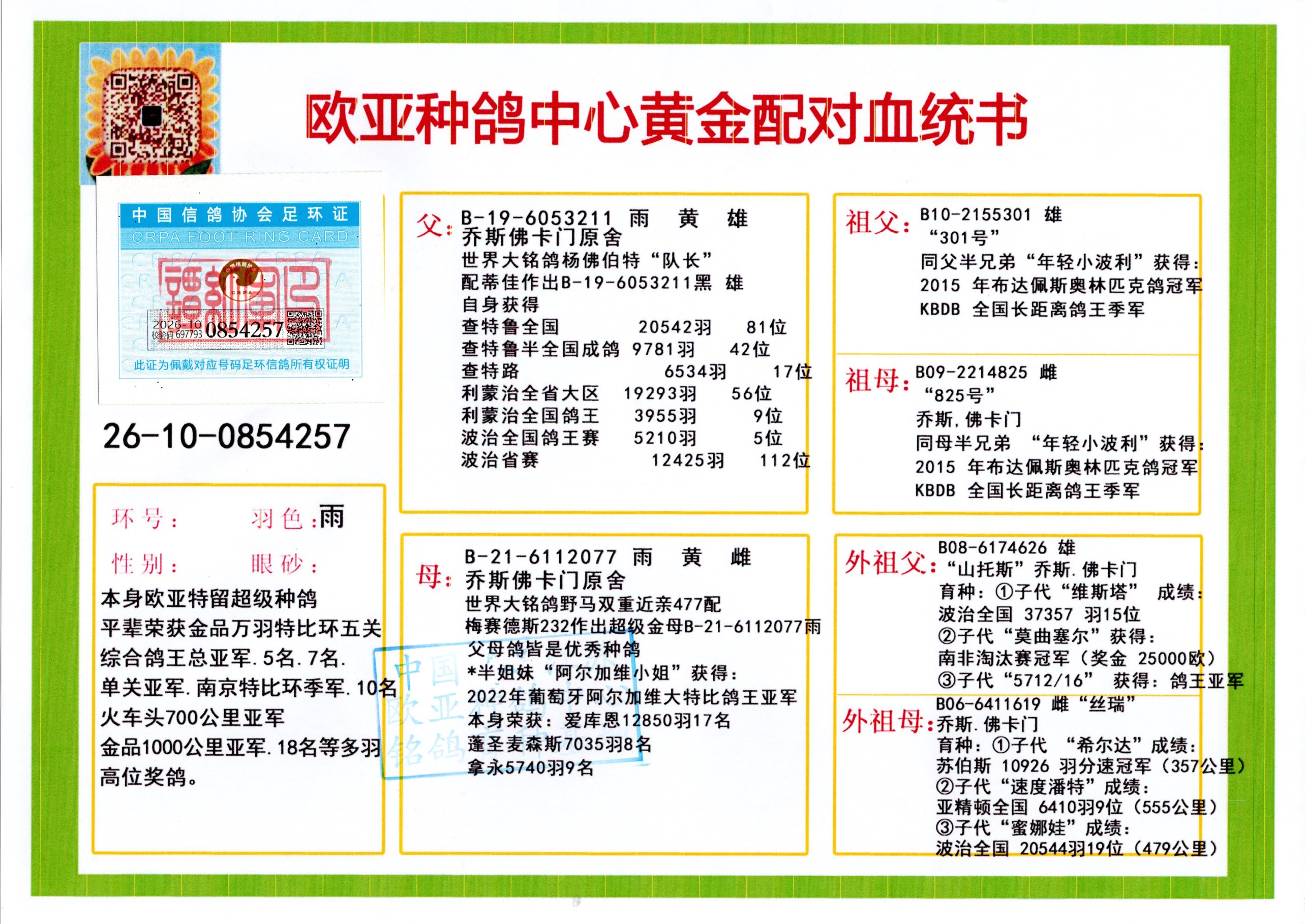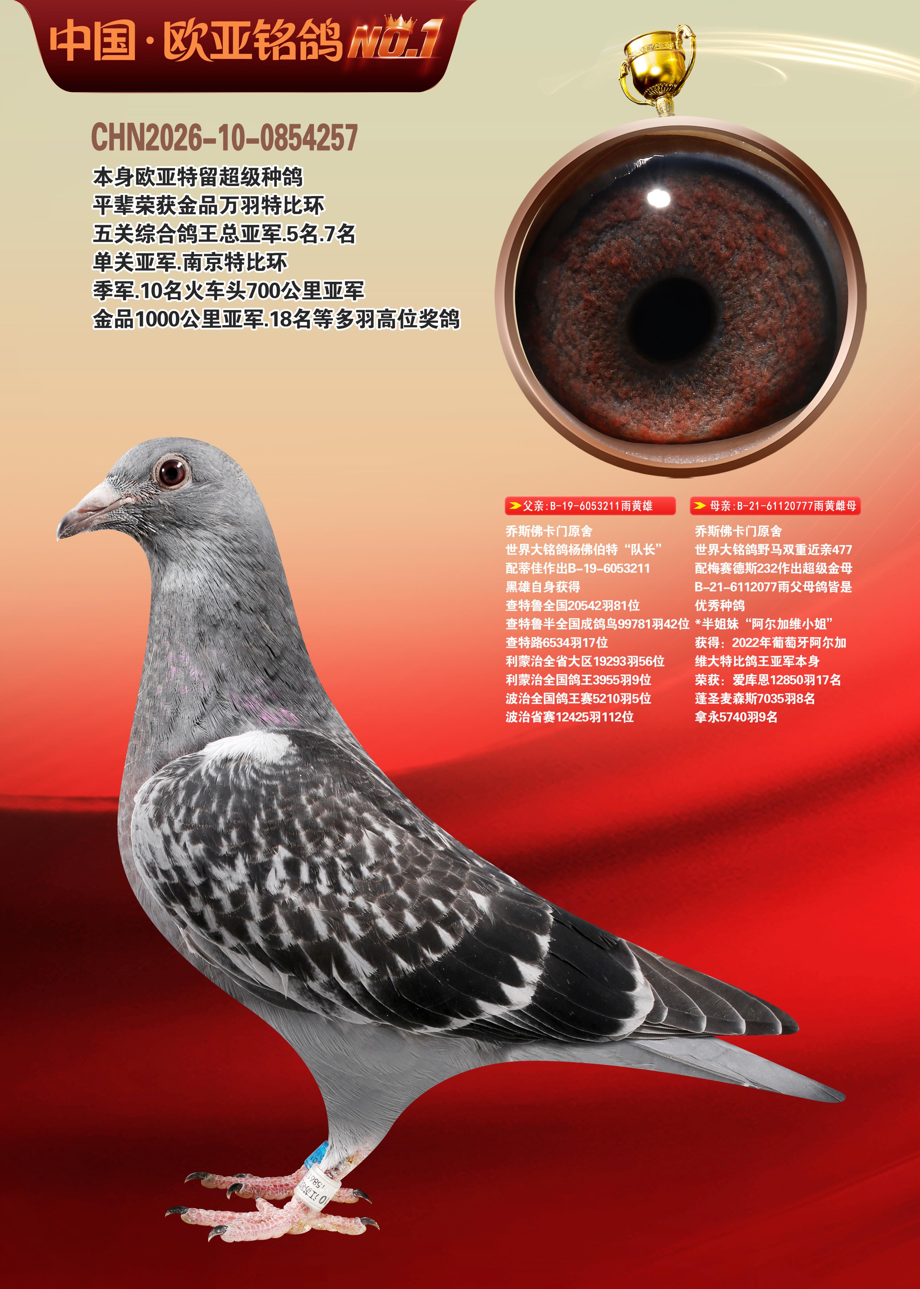 24年秋南京特比环欧亚荣获大团体冠军.小团体冠军551公里大特比13名.14名.16名.19名.20名.21名.24名.26名.27名.28名.42名.52名.54名.57名.65名.66名.68名.70名.71名.72名.74名.76名.80名.82名.83名.84名.85名.86名.90名.92名.110名.116名.121名.122名.128名.131名.158名.161名.164名.165名.166名.172名.174名.177名.182名.195名.196名.201名.205名.208名.210名.216名.253名.269名.275名.276名.294名.296名.299名,,24年秋云南天南铜都公棚决赛415名.天南铜都小棚决赛409名.云南玉活公棚决赛102名.490名.团体32名上笼二羽进二羽,天南铜都大棚506公里决赛445名。热烈祝贺河北省巨鹿县李兰生老师用欧亚泰山号血系连续十一年夺冠军,河北省国家赛冠军.全国季军等多次前十名高位,扬州王军王总用欧亚利奥24年春季获山东翔宇公棚决赛33名盖比53名。南京刘正龙刘总用欧亚盖比获得24年秋山东潍坊国际公棚决赛42名.精英赛30名.三关鸽王71名.决赛86名.加站赛16名.南京市特比环A组鸽王9名.B组鸽王5名.6名.C组鸽王5名.精英赛冠军4名.技能赛A组冠军4名.5名.秦淮区特比环荣获15名.46名.48名.87名。四川西昌徐亮徐总用欧亚利奥获得凉山州聚友决赛177名.第二关亚军双关鸽王19名.三关鸽王105名.云南豪庭公棚决赛603名。热烈祝贺24年四川重庆翔园鸽舍用欧亚泰山号荣获春季400公里冠军.秋季500公里冠军,河北王总用詹森X利奥获得千羽千翔公棚400公里冠军,广东蔡楷焕荣获24年秋爱好者 赛鸽俱乐部三关鸽王季军.一关420公里99名.二关450公里11名.三关520公里32名.单关季军.7名.12名,江西李卫兴荣获贵州红枫公棚8名.共翔俱乐部寄养棚四关综合鸽王30名.一关400公里78名.二关500公里55名.三关520公里37名.四关500公里57名.同父母获公棚18名.雷鸣获得武汉黄浦育翔中心冠军,四川陈文获得四川明鸿俱乐部300公里梦幻2名.3名.4名.9名.10名.13名.14名.15名.31名.34名.40名.41名.42名.43名.69名.71名.72名.73名.74名.94名.95名.97名.98名.99名.419公里决赛荣获总冠军7名.总共归巢9羽,四川徐亮获豪庭决赛603名,山西郑勇获得山西泰鑫公棚决赛255名詹森红狐,热烈祝贺马总获得开尔(飞跃队)决赛9名获奖金1310000万元.第一关52名,天津津福资赛180公里96名.获奖金429543万元,欧亚支持全国鸽友24年秋多人报喜 祝大家取得更好成绩,给欧亚报喜鸽友欧亚决定给每人赠送一羽超级种鸽。欧亚俱乐部特比环多关鸽王成绩:15年秋淮安特比环黑色星期一全会上笼9700多羽,当天无鸽归巢,第二天全会归巢357羽,本舍归巢158羽.前十名八羽.前一百名归巢57羽,16年春季获五关鸽王总冠军,总亚军四名.六名.七名.九名.十名.晶艺俱乐部520公里冠亚季军5名.6名.7名.9名.11名等,火车头冠军.季军6名.8名.9名.10名,16年秋晶艺俱乐部特比环520公里亚军.季军4名.6名.7名.9名,15年春南京白下特比环冠军.亚军.季军6名.7名.8名.9名.10名.指定鸽A B组获得冠军.亚军.季军4名.5名.,17年淮安特比环亚军.4名.5名.7名.8名.10名.六关鸽王总冠军.4名.6名.9名.10名,寄养棚宿迁刘总20羽特比环获冠军.季军.4名.7名.8名.9名等。18年荣获万羽特比环六关鸽王总冠军.总亚军.总季军.6名.8名.十名.单关四羽冠军.二羽亚军.四羽季军.前十名27羽。19年秋万羽特比环六关鸽王总亚军.总季军.5名.8名等,单关二羽冠军.三羽亚军.一羽季军前十名31羽。20年秋淮安市鸽会四关特比环大赛风雨无阻鸽王亚军.鸽王六名,金品俱乐部万羽特比环六关鸽王总冠军,总亚军.四名.五名.六名.七名.八名.十名.前二百名鸽王35羽,单关冠亚季军前十名四十多羽,火车头五关鸽王季军.六名.八名.前二百名鸽王十七羽。20年春荣获淮安五区一市四关鸽王总冠军.亚军.四名.八名.九名。21年秋荣获金品万羽特比环大赛六关鸽王总亚军.总季军.四名.七名.九名.十名.单关冠亚军季军前十名三十多羽。火车头协会鸽王六名.七名.十名.单关前十名十七羽。22年秋荣获鸽王总冠军.总亚军.5名.7名.8名.9名.11名.单关冠亚季军前十名三十多羽,第一关单关前二百名四十多羽,第二关前二百名三十多羽,第三关前二百名四十多羽,第四关前二百名四十多羽,第五关前一百名53羽。23年秋荣获鸽王季军.五名.八名.十名.13名.17名.20名.27名等多羽鸽王.单关前十名二十多羽。公棚.寄养棚部分成绩:16年秋宁夏黄河公棚总冠军电脑戈马力指定通炮冠军,17年送八羽参赛获得鸽王八名进奖四名,支持韩总荣获八名。支持鸽友荣获宁夏中卫公棚决赛总冠军.精英赛冠军,支持18年宁夏黄河公棚决赛冠军詹森X泰山。安徽鼎博寄养棚院内外四关鸽王总冠军.鸽王十七名.三十七名同窝,鸽王39名.42名.58名.67名。18年山东公棚预赛冠军.决赛65名.送八羽进奖五羽.指定获奔驰汽车一辆。支持鸽友获得云南蓝云公棚冠军.盖比X佛卡门。支持鸽友荣获云南银集公棚决赛冠军 詹森427X520血系 速度赛6700羽冠军。17年荣获金马俱乐部寄养棚四关鸽王总冠军.季军.六名.八名.第一关冠军.亚军.季军四名.七名.十一名.金牌教练奖。支持鸽友18年北京费翔公棚预赛九名电脑X桑杰士,支持鸽友荣获陕西威力公棚决赛11名.内蒙古临河寄养棚四关鸽王六名.詹森配泰山,支持河北王总用欧亚詹森427配胡本喜获20年秋开尔青年棚季军。云南东荣公棚16年预赛冠军.决赛77名.17年决赛12名.詹森红狐X泰山,17年平安公棚决赛4名 詹森427。欧亚获得21年金母寄养棚第一关四名.第二关5名.第三关5名.6名.7名.10名.三关鸽王总冠军,四关鸽王14名.十羽鸽王。支持河