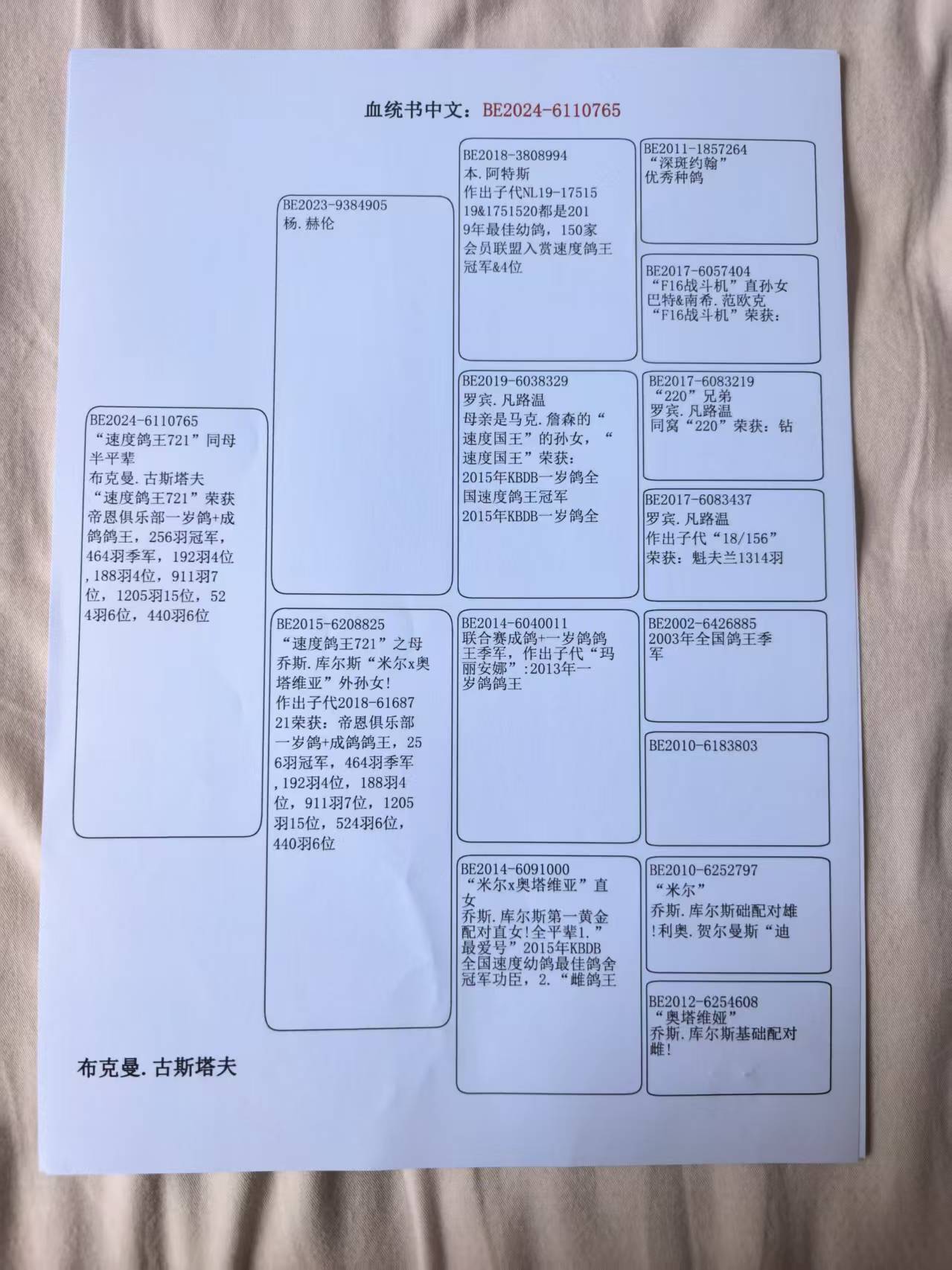 - 当前查看拍卖鸽:速度鸽王721同母765
