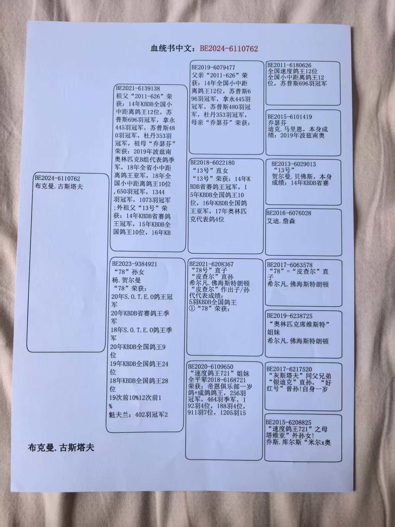 - 当前查看拍卖鸽:速度鸽王78号直孙作出762