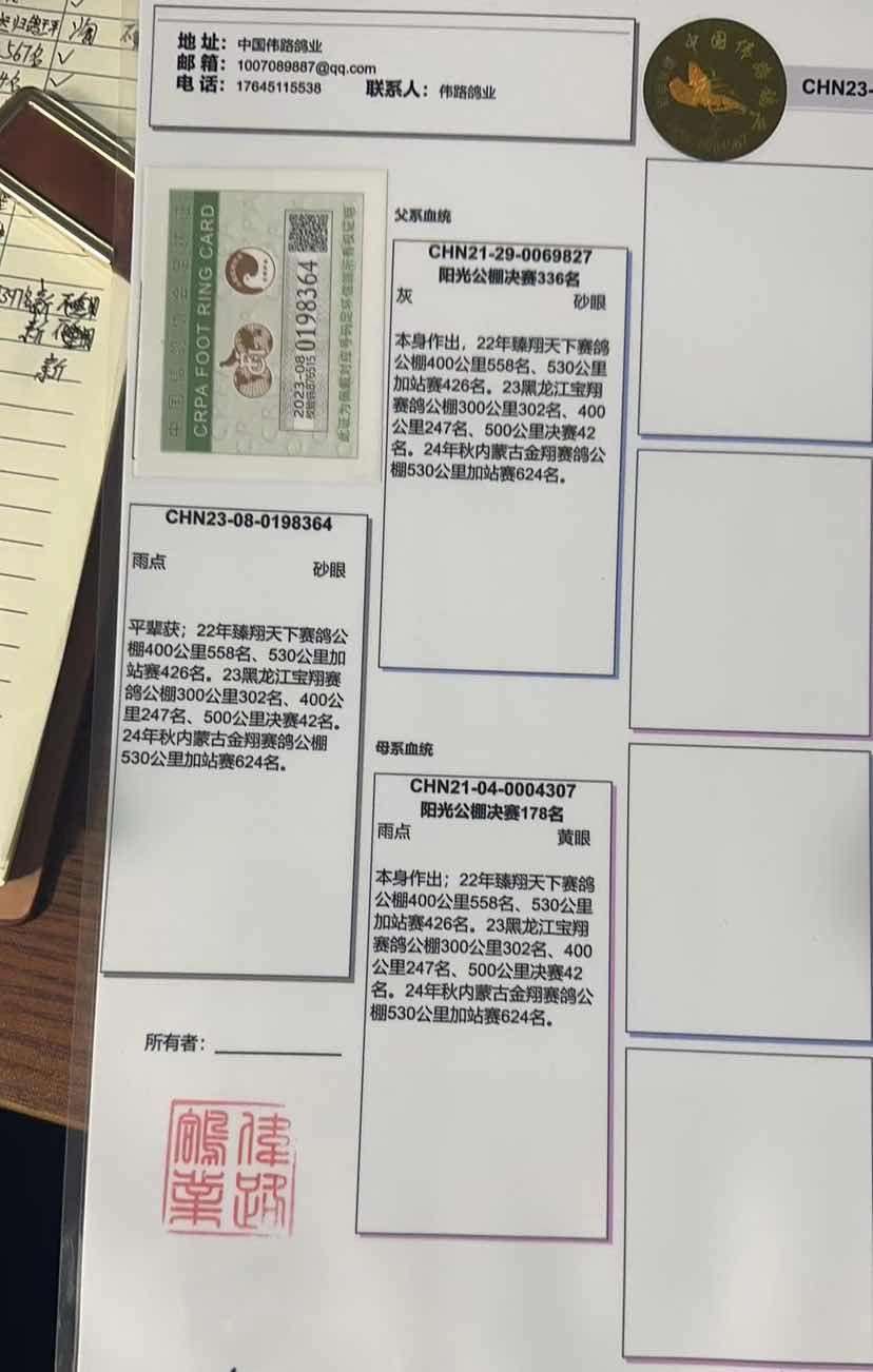 有血统书的都会上传,没有的为鸽友提供鸽子照片及上面育种记录信息
