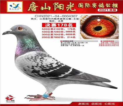 22年臻翔天下赛鸽公棚400公里558名、530公里加站赛426名。