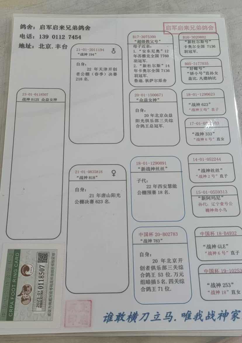 有血统书的都会上传,没有的为鸽友提供鸽子照片及上面育种记录信息