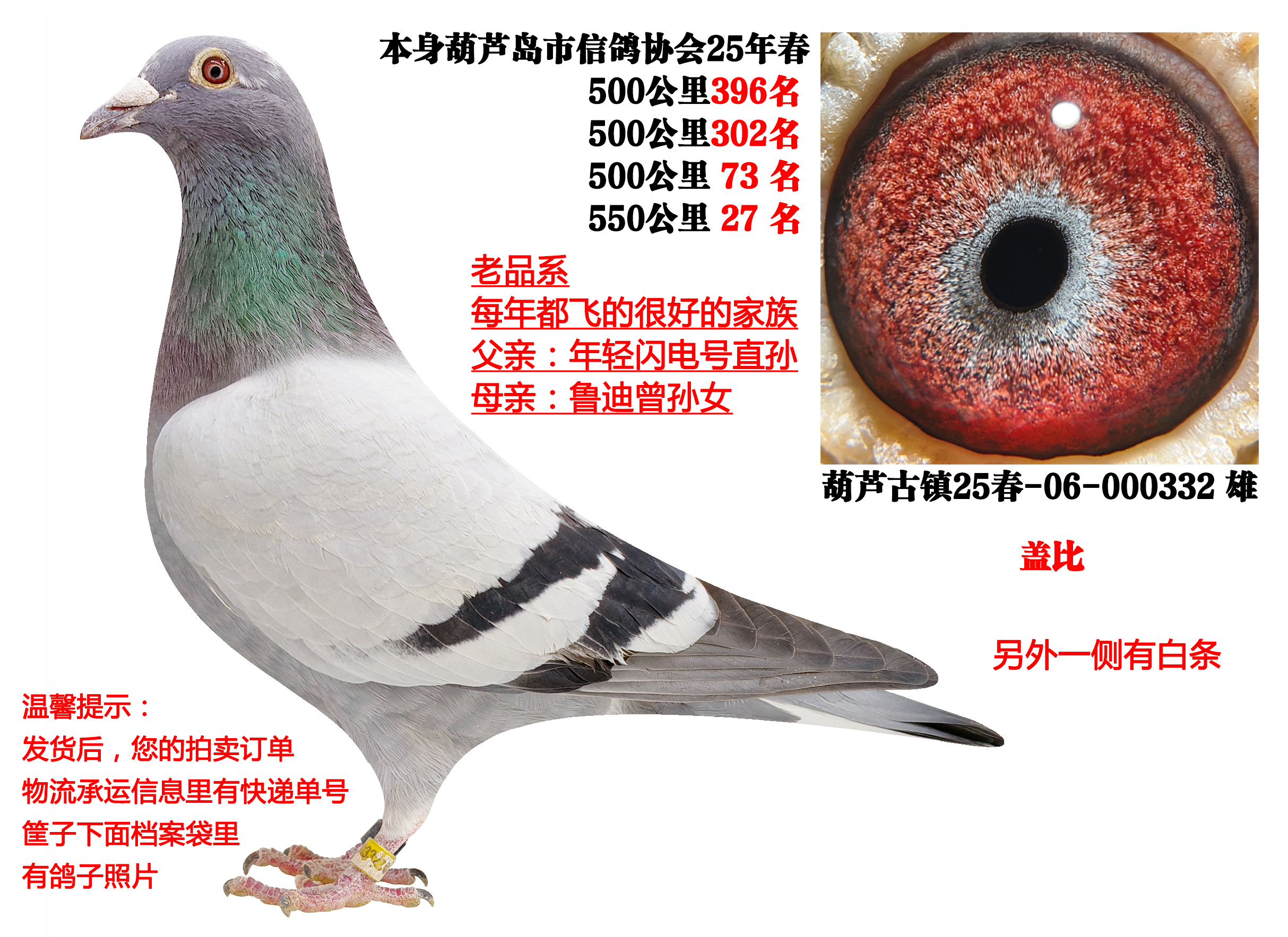 4、本期拍卖鸽有血统书的都已经上传,没有上传的代表没有血统书及足环证,介意勿拍,以免后续发生不必要麻烦。