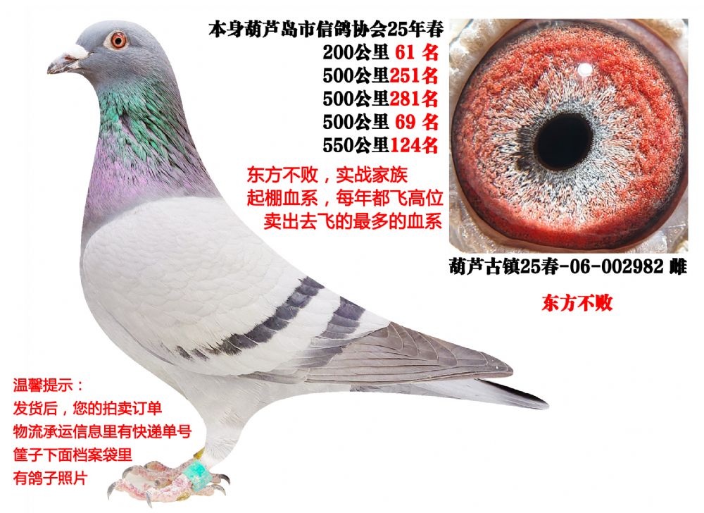 - 当前查看拍卖鸽:25年春四关500公里成绩鸽(东方不败)