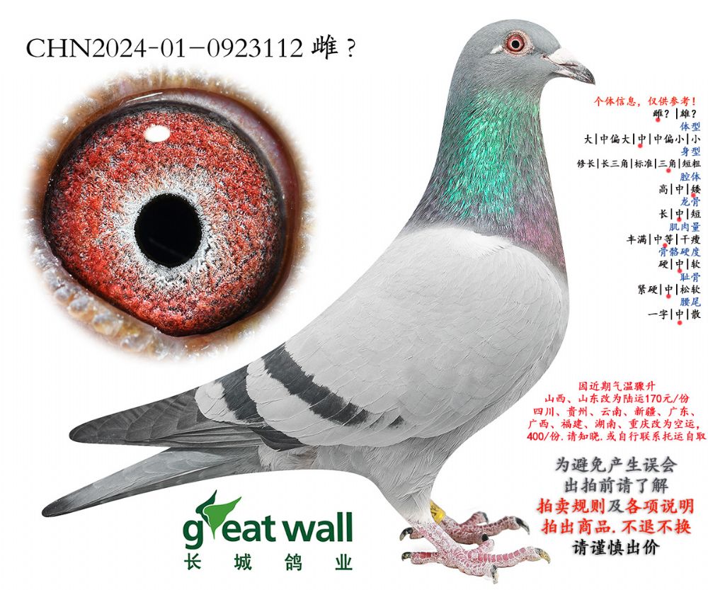 因拍卖鸽均是未做育过的种鸽或幼鸽,图内所标雌雄仅供参考,实际性别已实物为准。不做退换理由。