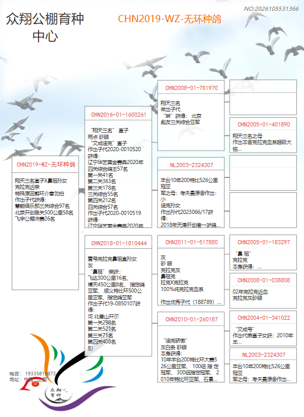 - 当前查看拍卖鸽:克拉克鼻祖无环号种鸽