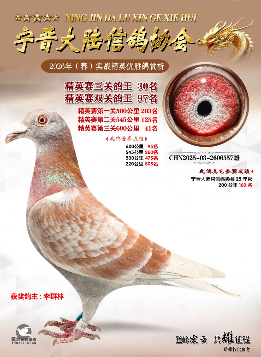 部分偏远地区的鸽友请在拍鸽前先联系拍卖方确认是否可以发鸽,联系电话:13930973375