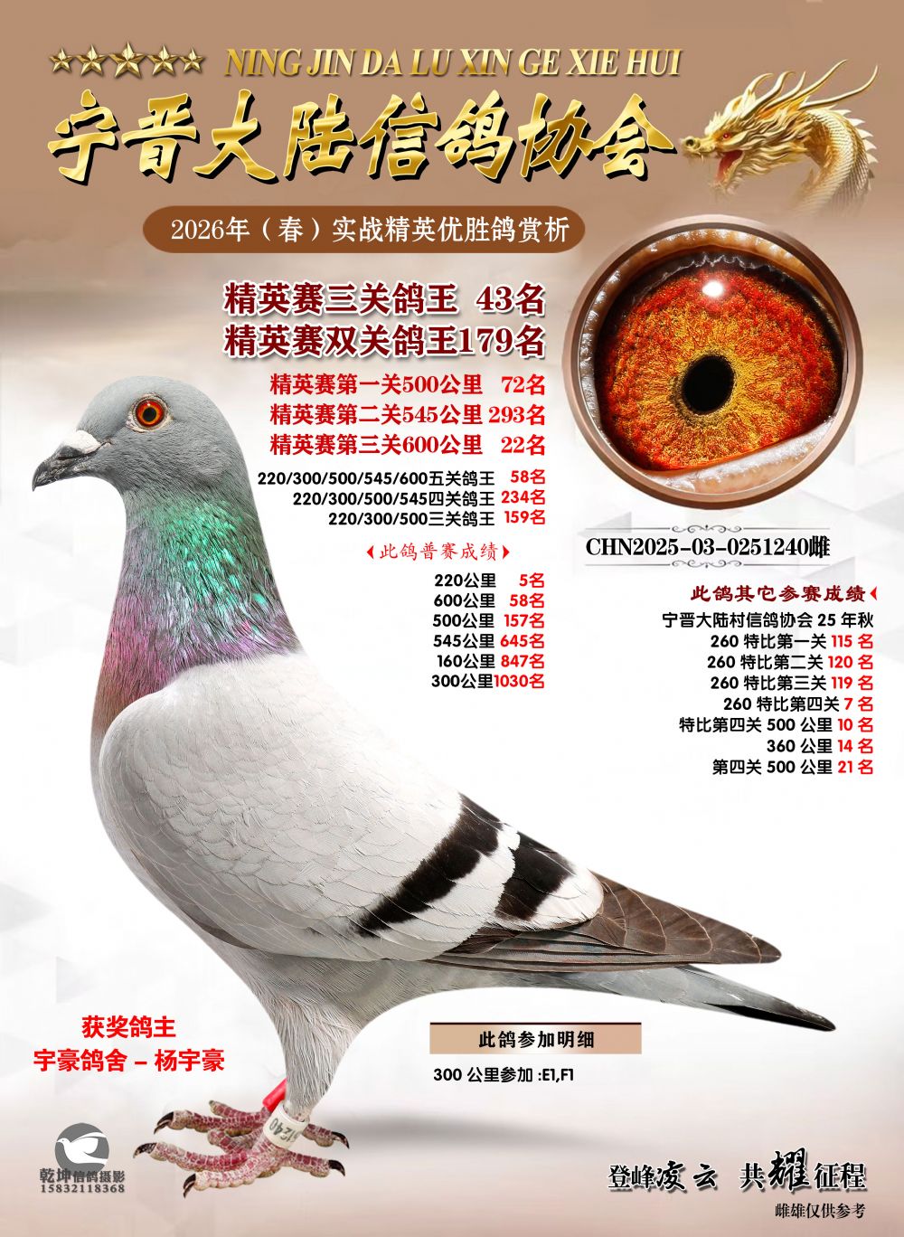 部分偏远地区的鸽友请在拍鸽前先联系拍卖方确认是否可以发鸽,联系电话:13930973375