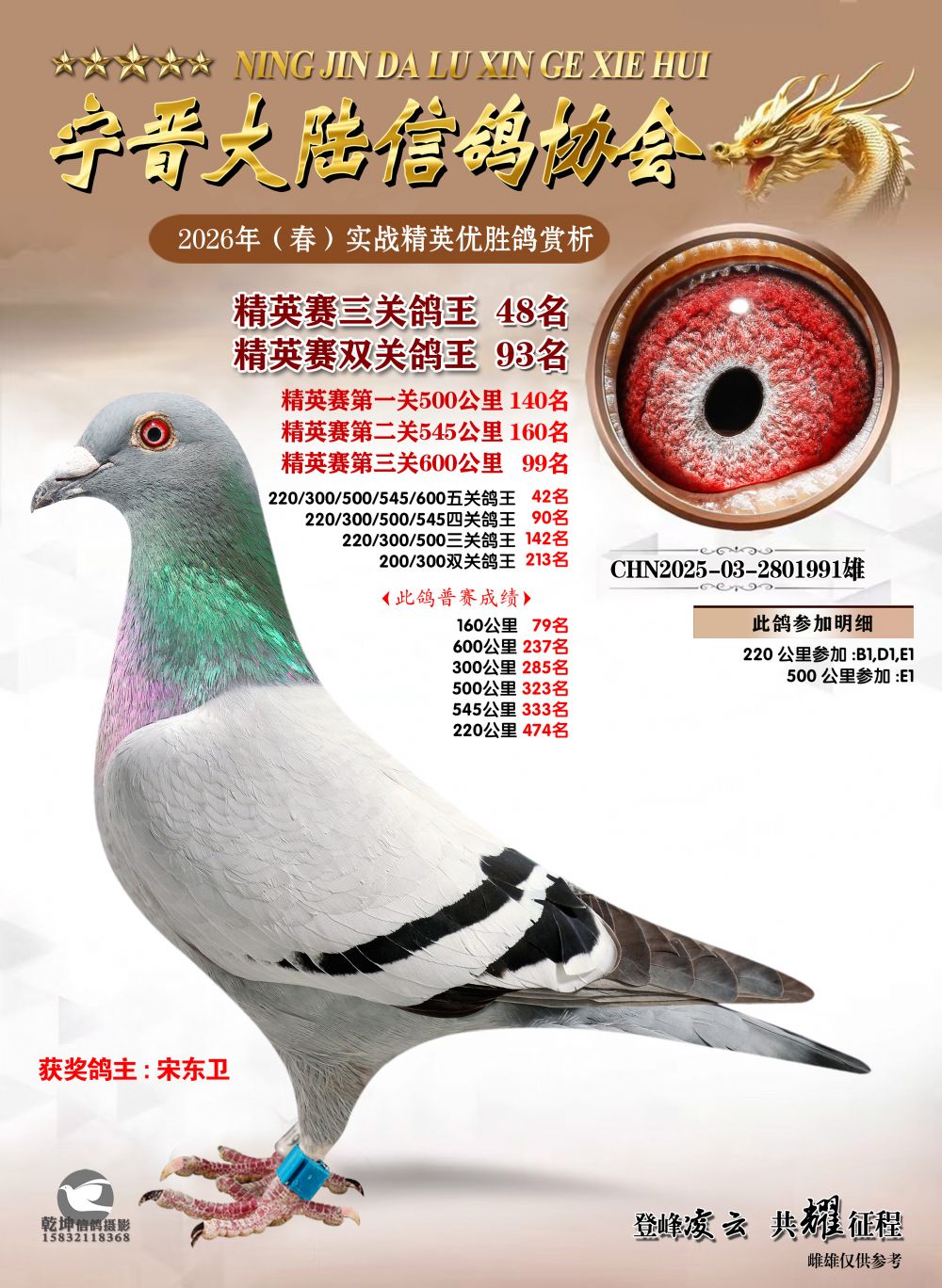部分偏远地区的鸽友请在拍鸽前先联系拍卖方确认是否可以发鸽,联系电话:13930973375