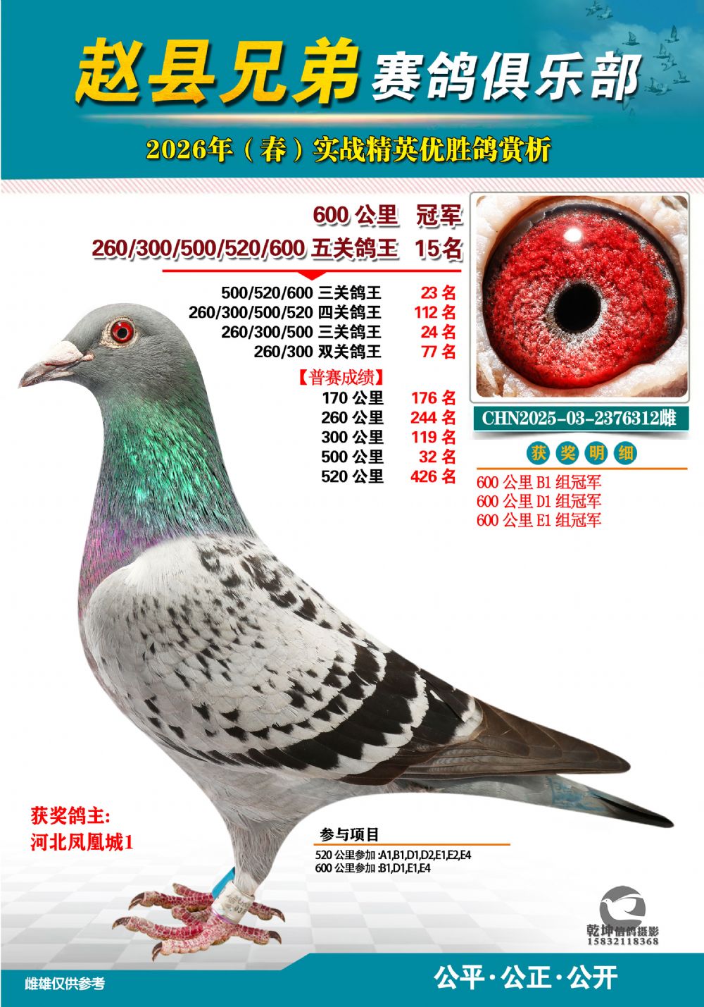 | 1662032 | 精英赛三关鸽王15名 | ¥500元 | 2次 |