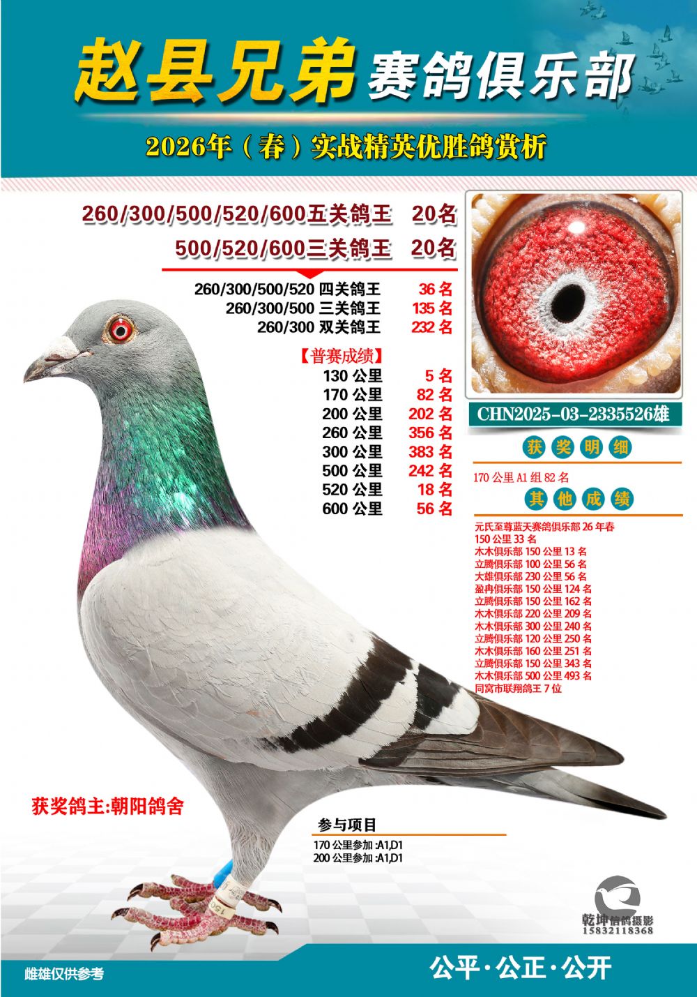 | 1662012 | 五关鸽王冠军 | ¥3100元 | 10次 |