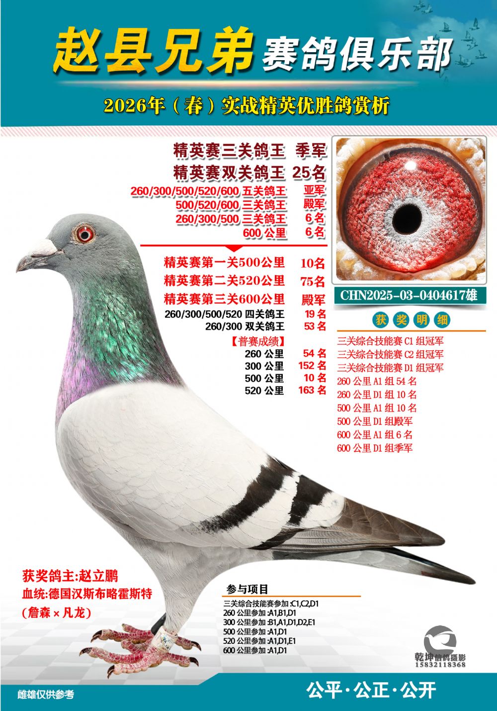 | 1662032 | 精英赛三关鸽王15名 | ¥500元 | 2次 |