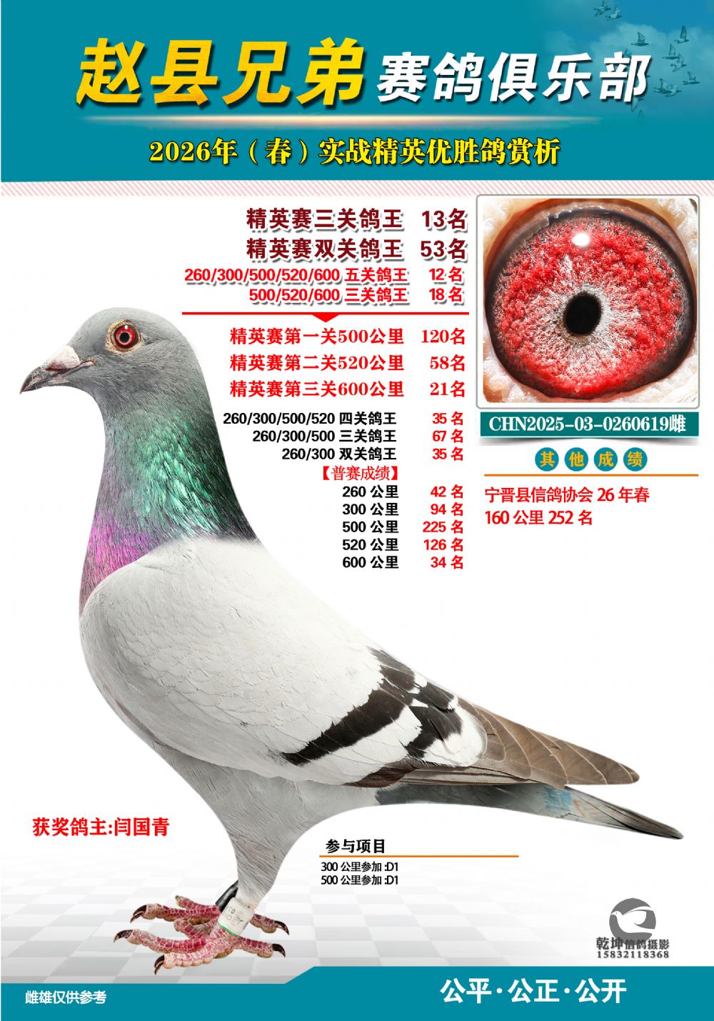 精英赛三关鸽王13名