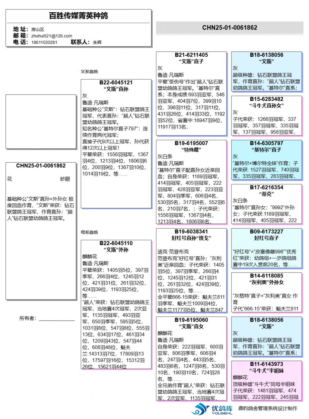 特别说明:25年幼鸽雌雄仅供参考,不保证正确;如得标鸽友为县级城市或者汽运火车无法直达的请提前联系好18611020281,否则所有责任归买方承担!