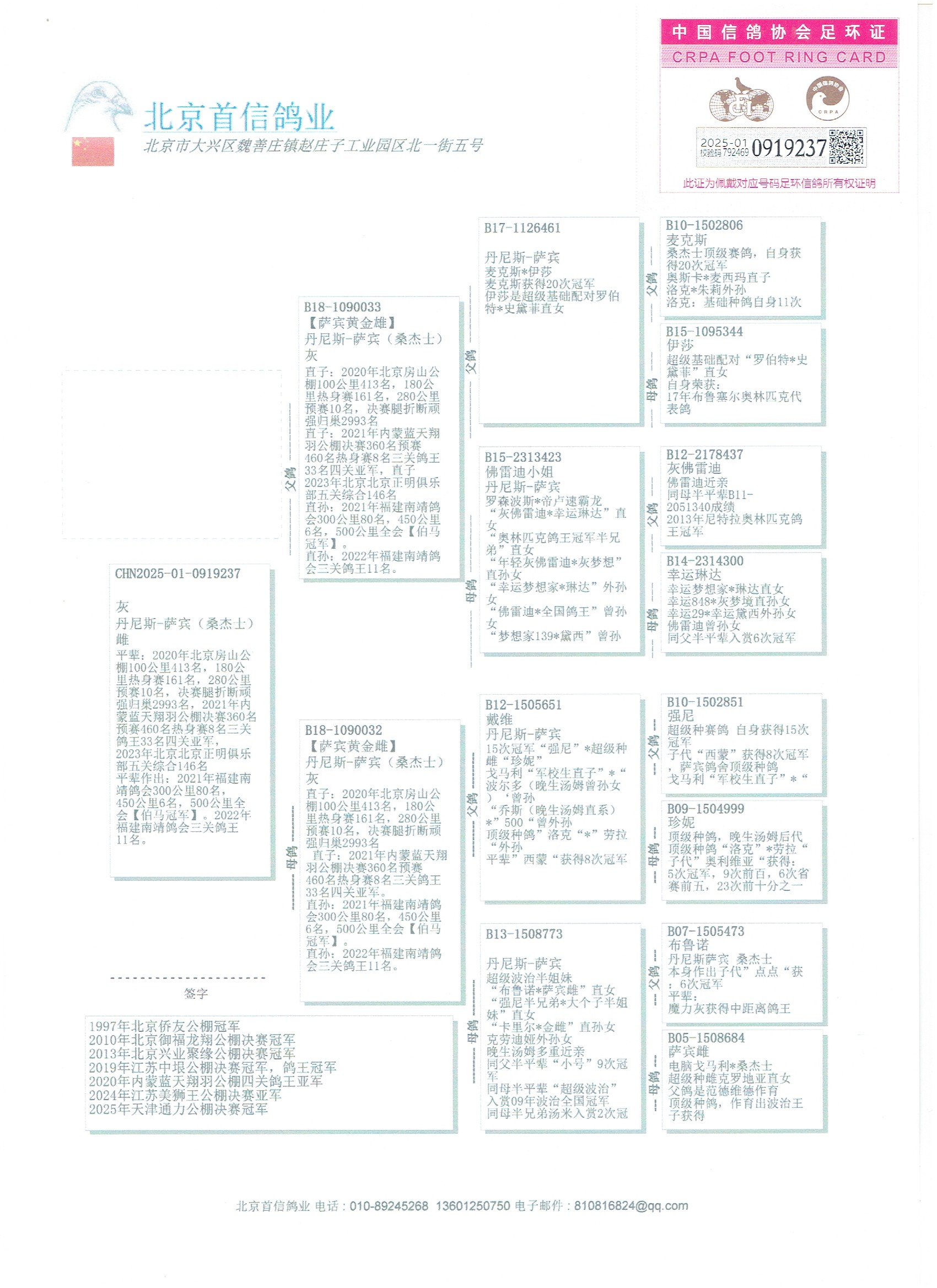 1662185 安德烈勃默德公棚鸽王冠军全平辈 ¥600元 0次