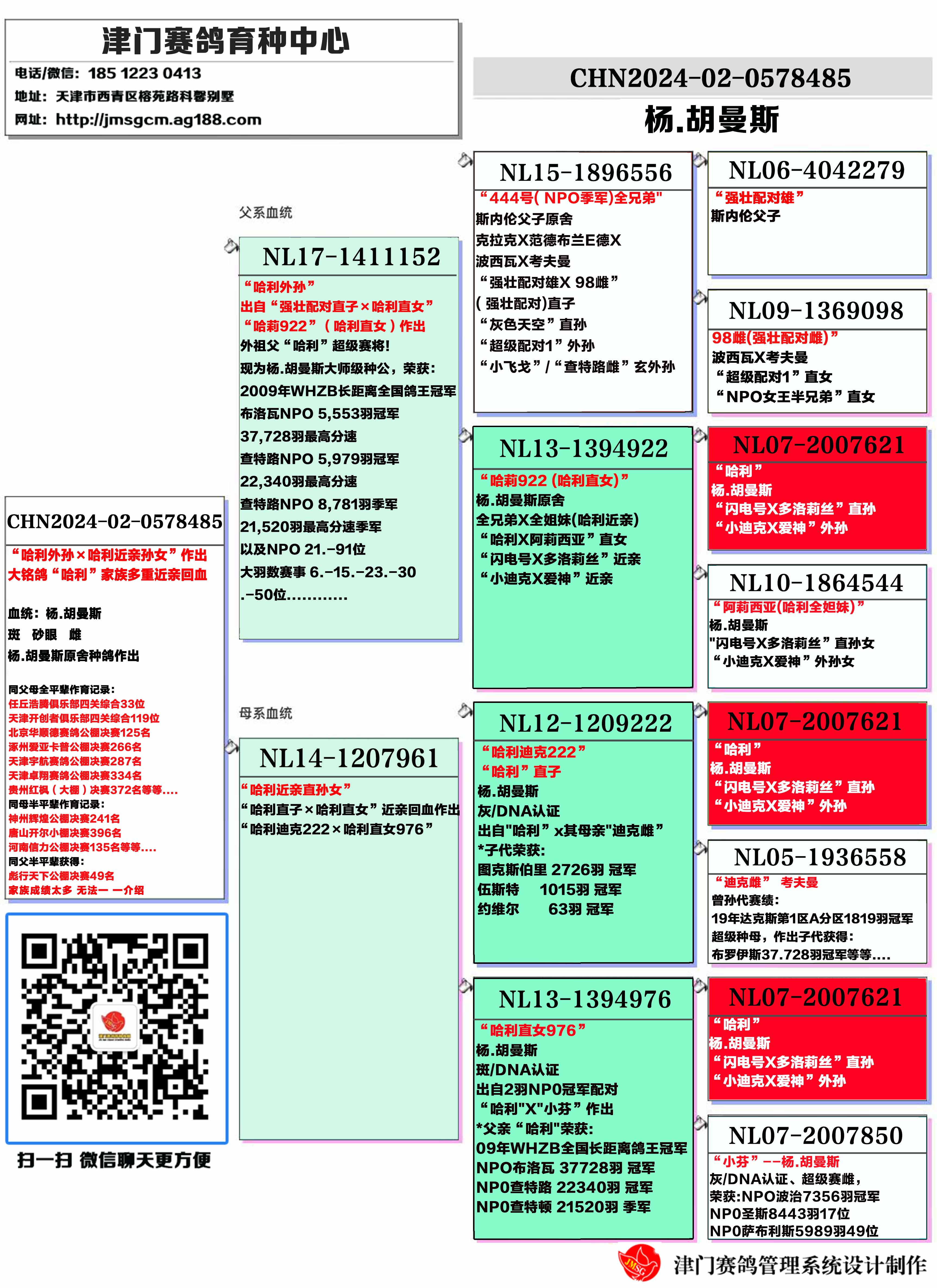 - 当前查看拍卖鸽:杨.胡曼斯“哈利外孙×哈利近亲孙女”三重