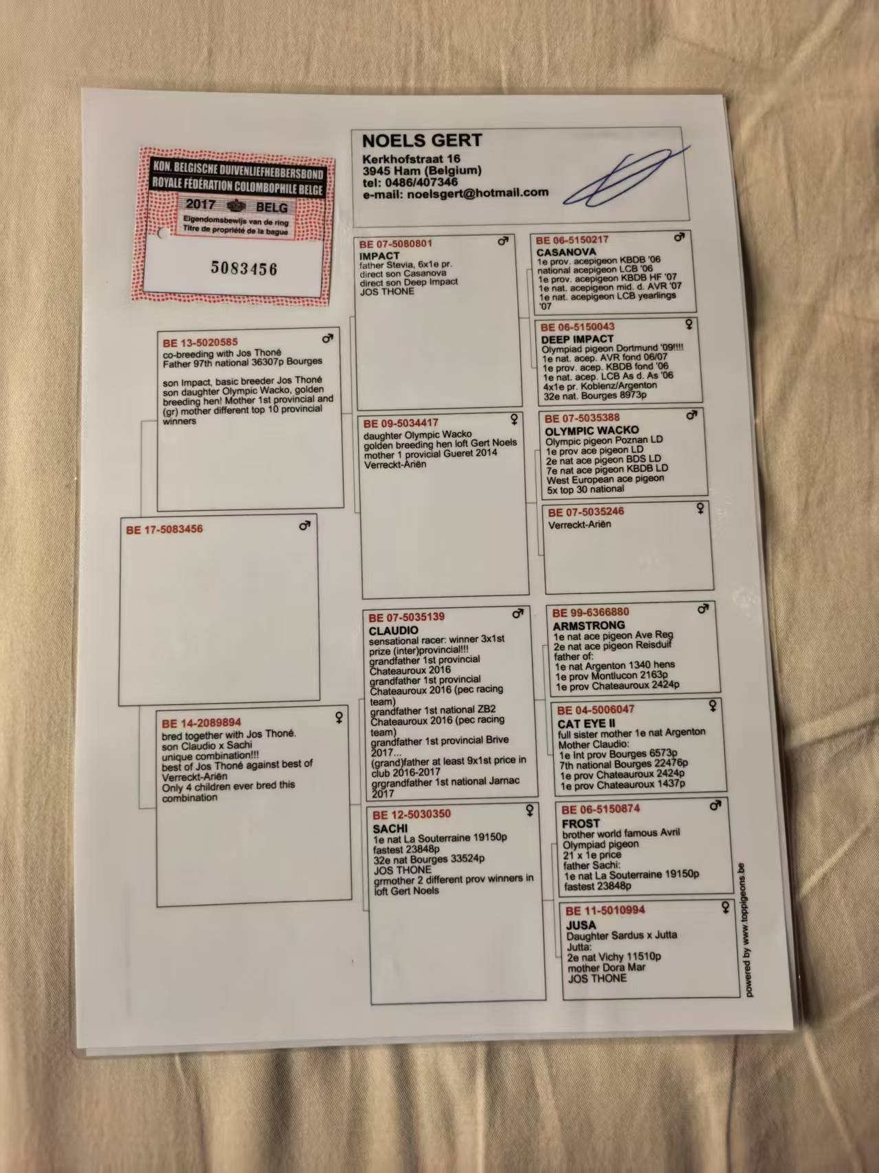 - 当前查看拍卖鸽:乔斯托内镇舍种雄3456