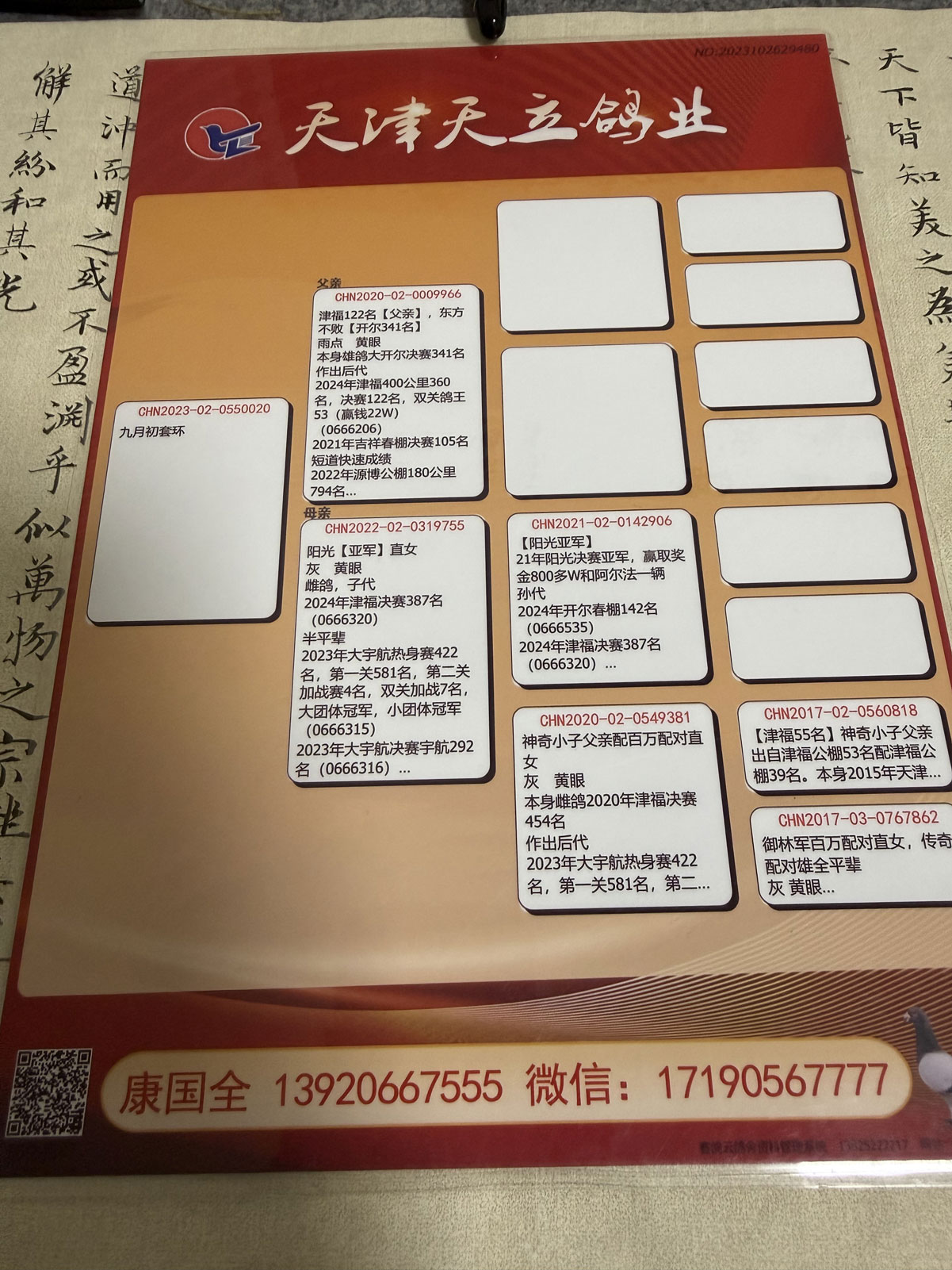 天津天立康国全:豪横系 雌鸽