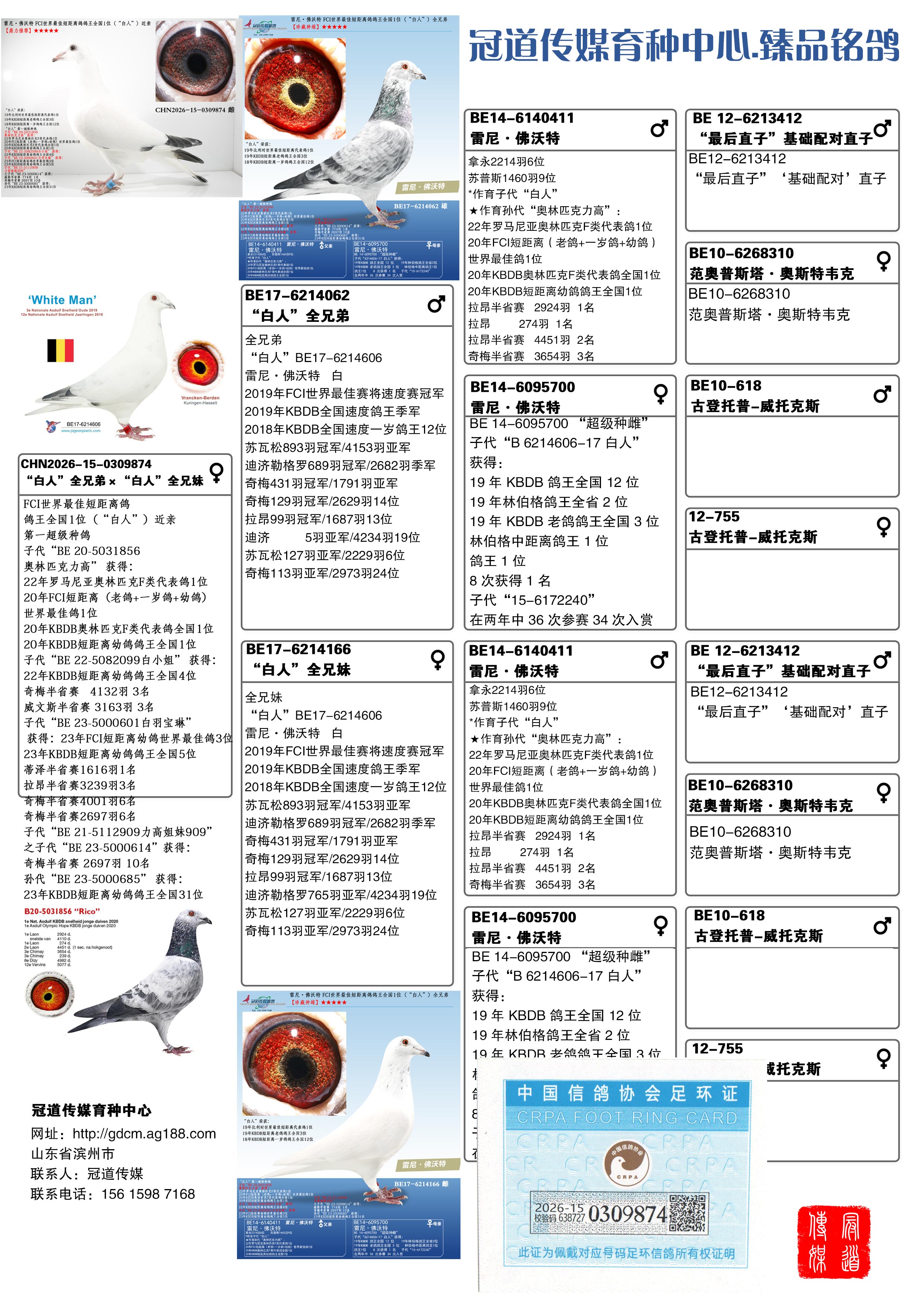 | 1662591 | 雷尼·佛沃特 FCI世界最佳短距离鸽鸽王全国1位(“白人”) | ¥600元 | 0次 |