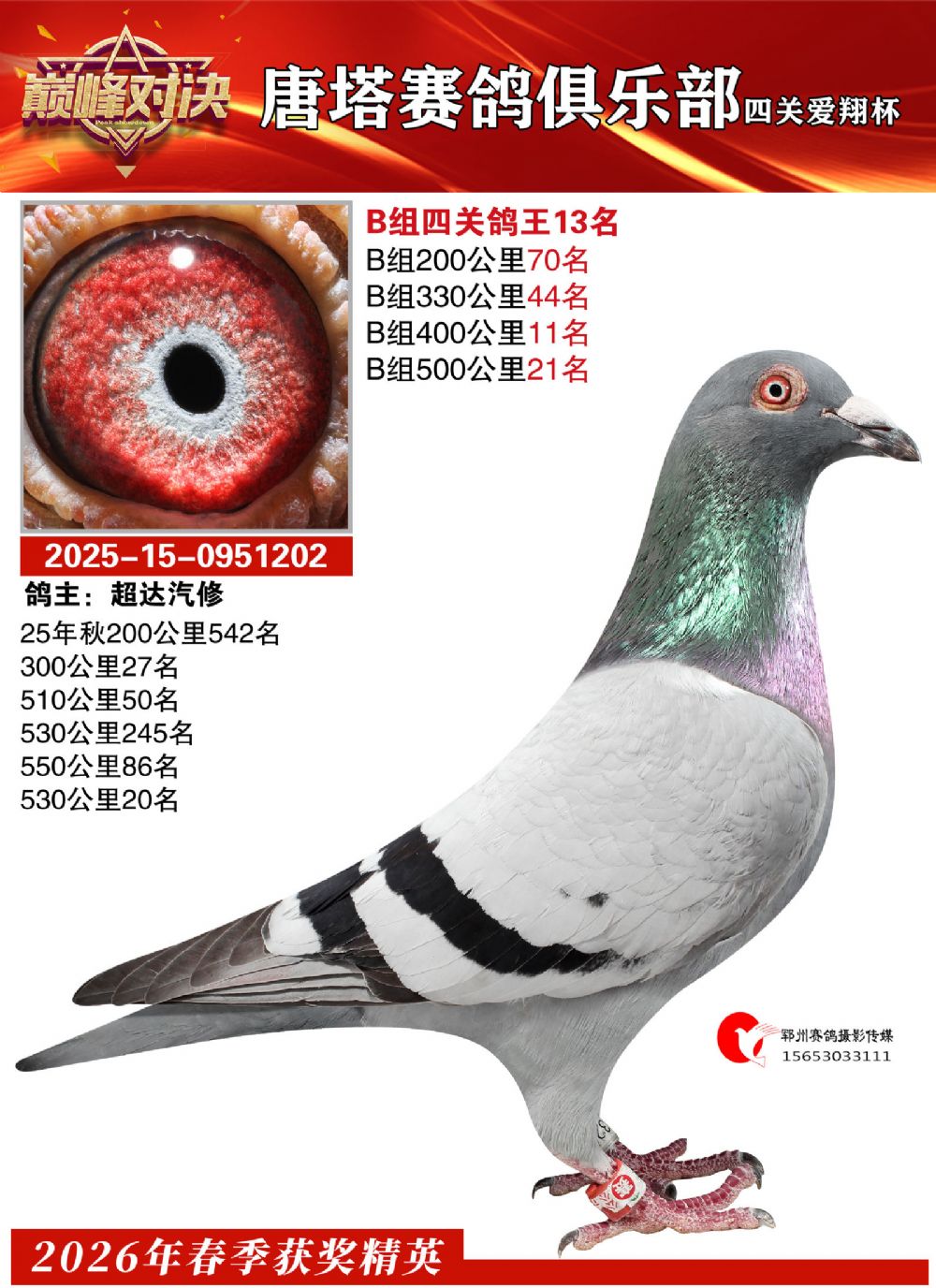 爱翔杯四关鸽王B组13名