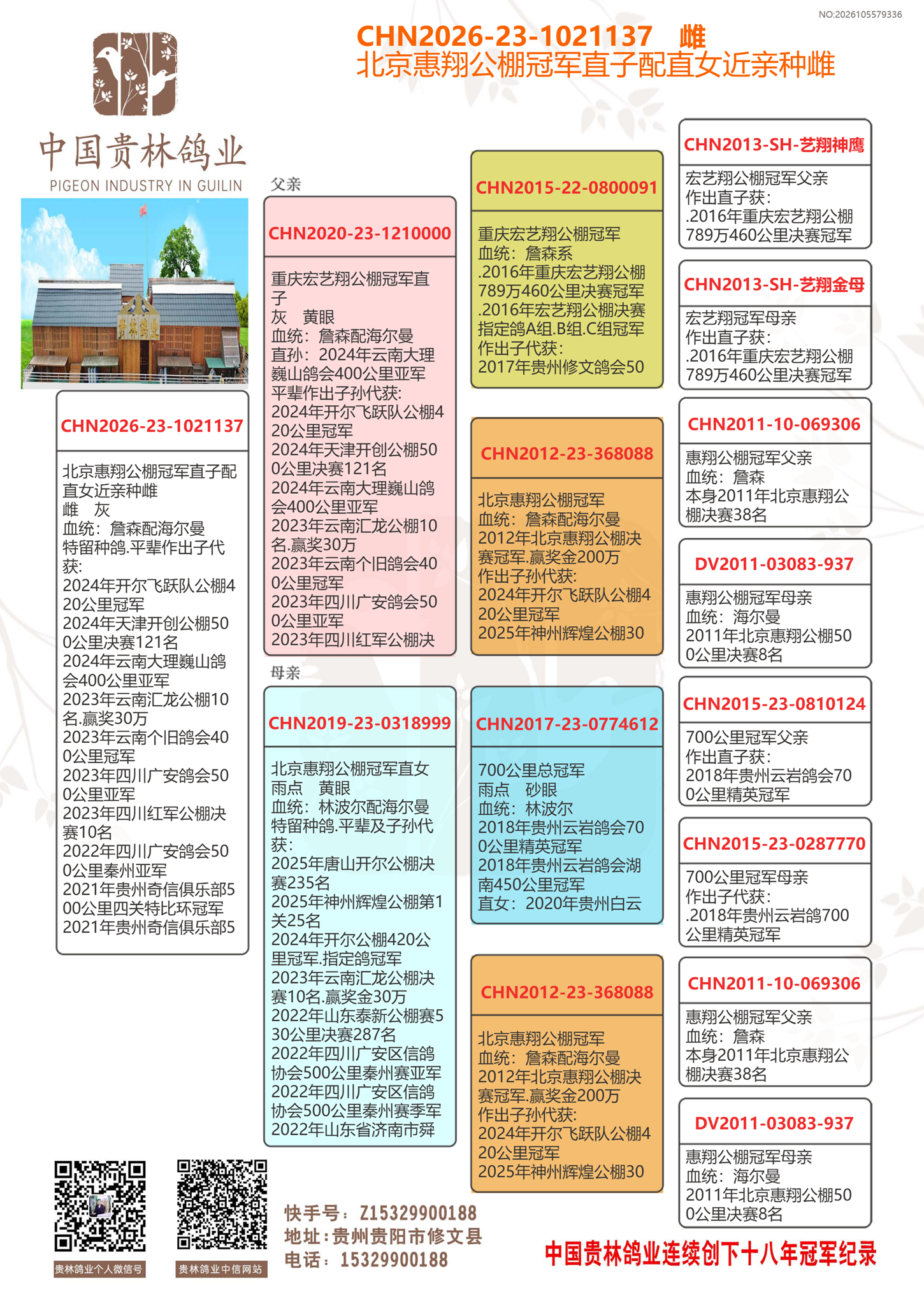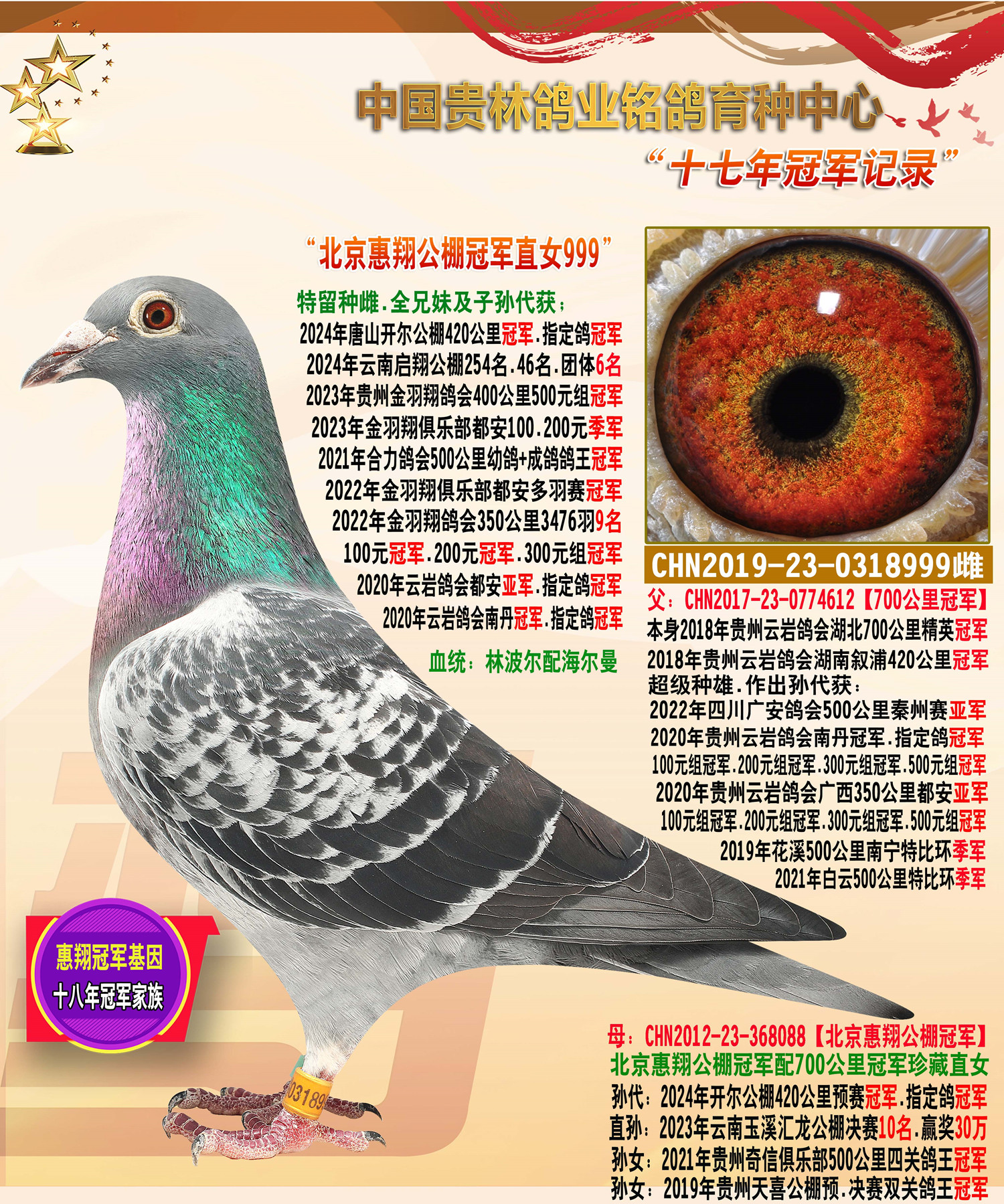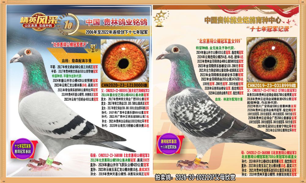 北京惠翔公棚冠军直子配惠翔公棚冠军直女近亲.平辈冠亚季军多羽