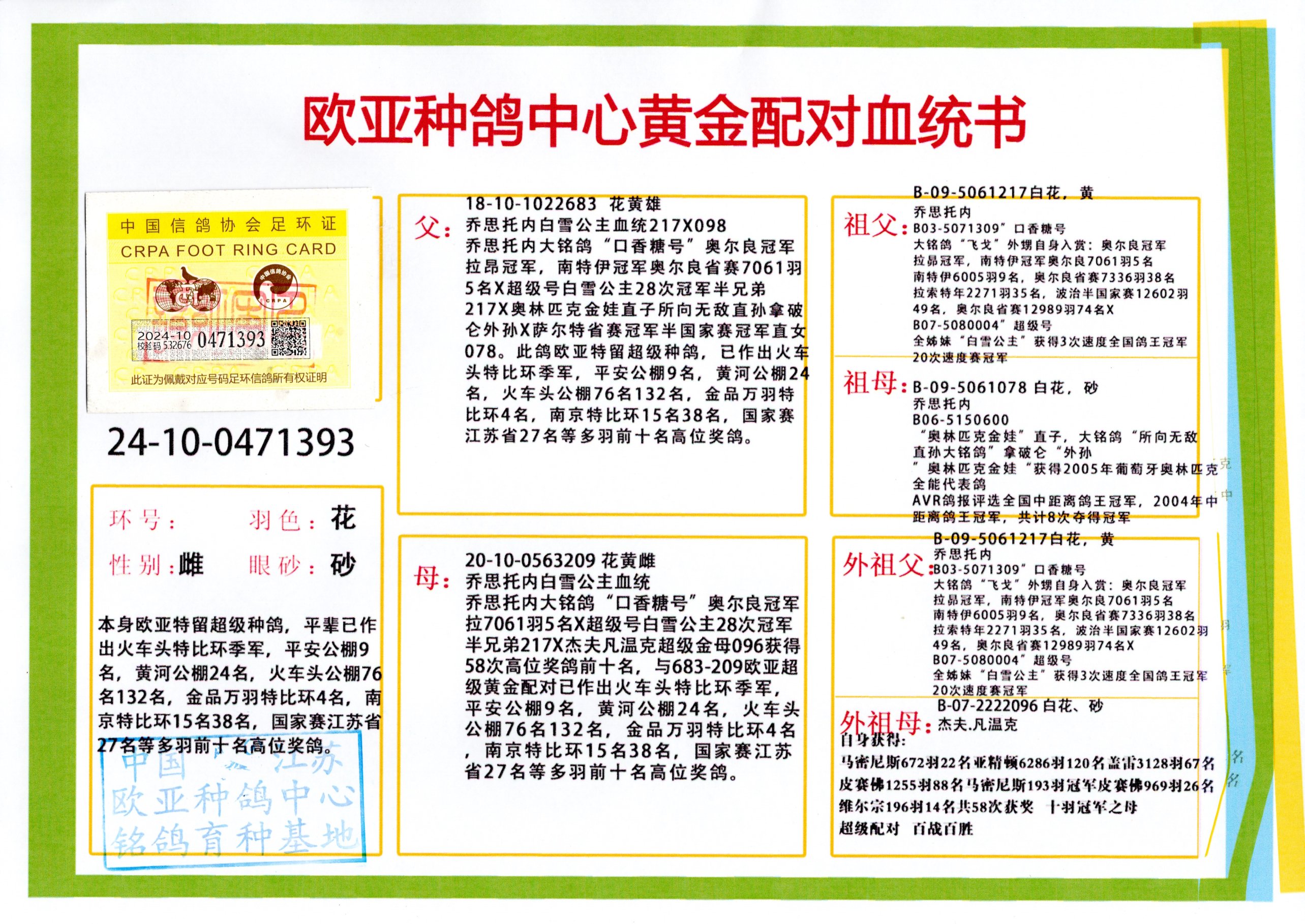 24年秋南京特比环欧亚荣获大团体冠军.小团体冠军551公里大特比13名.14名.16名.19名.20名.21名.24名.26名.27名.28名.42名.52名.54名.57名.65名.66名.68名.70名.71名.72名.74名.76名.80名.82名.83名.84名.85名.86名.90名.92名.110名.116名.121名.122名.128名.131名.158名.161名.164名.165名.166名.172名.174名.177名.182名.195名.196名.201名.205名.208名.210名.216名.253名.269名.275名.276名.294名.296名.299名,,24年秋云南天南铜都公棚决赛415名.天南铜都小棚决赛409名.云南玉活公棚决赛102名.490名.团体32名上笼二羽进二羽,天南铜都大棚506公里决赛445名。热烈祝贺河北省巨鹿县李兰生老师用欧亚泰山号血系连续十一年夺冠军,河北省国家赛冠军.全国季军等多次前十名高位,扬州王军王总用欧亚利奥24年春季获山东翔宇公棚决赛33名盖比53名。南京刘正龙刘总用欧亚盖比获得24年秋山东潍坊国际公棚决赛42名.精英赛30名.三关鸽王71名.决赛86名.加站赛16名.南京市特比环A组鸽王9名.B组鸽王5名.6名.C组鸽王5名.精英赛冠军4名.技能赛A组冠军4名.5名.秦淮区特比环荣获15名.46名.48名.87名。四川西昌徐亮徐总用欧亚利奥获得凉山州聚友决赛177名.第二关亚军双关鸽王19名.三关鸽王105名.云南豪庭公棚决赛603名。热烈祝贺24年四川重庆翔园鸽舍用欧亚泰山号荣获春季400公里冠军.秋季500公里冠军,河北王总用詹森X利奥获得千羽千翔公棚400公里冠军,广东蔡楷焕荣获24年秋爱好者 赛鸽俱乐部三关鸽王季军.一关420公里99名.二关450公里11名.三关520公里32名.单关季军.7名.12名,江西李卫兴荣获贵州红枫公棚8名.共翔俱乐部寄养棚四关综合鸽王30名.一关400公里78名.二关500公里55名.三关520公里37名.四关500公里57名.同父母获公棚18名.雷鸣获得武汉黄浦育翔中心冠军,四川陈文获得四川明鸿俱乐部300公里梦幻2名.3名.4名.9名.10名.13名.14名.15名.31名.34名.40名.41名.42名.43名.69名.71名.72名.73名.74名.94名.95名.97名.98名.99名.419公里决赛荣获总冠军7名.总共归巢9羽,四川徐亮获豪庭决赛603名,山西郑勇获得山西泰鑫公棚决赛255名詹森红狐,热烈祝贺马总获得开尔(飞跃队)决赛9名获奖金1310000万元.第一关52名,天津津福资赛180公里96名.获奖金429543万元,欧亚支持全国鸽友24年秋多人报喜 祝大家取得更好成绩,给欧亚报喜鸽友欧亚决定给每人赠送一羽超级种鸽。欧亚俱乐部特比环多关鸽王成绩:15年秋淮安特比环黑色星期一全会上笼9700多羽,当天无鸽归巢,第二天全会归巢357羽,本舍归巢158羽.前十名八羽.前一百名归巢57羽,16年春季获五关鸽王总冠军,总亚军四名.六名.七名.九名.十名.晶艺俱乐部520公里冠亚季军5名.6名.7名.9名.11名等,火车头冠军.季军6名.8名.9名.10名,16年秋晶艺俱乐部特比环520公里亚军.季军4名.6名.7名.9名,15年春南京白下特比环冠军.亚军.季军6名.7名.8名.9名.10名.指定鸽A B组获得冠军.亚军.季军4名.5名.,17年淮安特比环亚军.4名.5名.7名.8名.10名.六关鸽王总冠军.4名.6名.9名.10名,寄养棚宿迁刘总20羽特比环获冠军.季军.4名.7名.8名.9名等。18年荣获万羽特比环六关鸽王总冠军.总亚军.总季军.6名.8名.十名.单关四羽冠军.二羽亚军.四羽季军.前十名27羽。19年秋万羽特比环六关鸽王总亚军.总季军.5名.8名等,单关二羽冠军.三羽亚军.一羽季军前十名31羽。20年秋淮安市鸽会四关特比环大赛风雨无阻鸽王亚军.鸽王六名,金品俱乐部万羽特比环六关鸽王总冠军,总亚军.四名.五名.六名.七名.八名.十名.前二百名鸽王35羽,单关冠亚季军前十名四十多羽,火车头五关鸽王季军.六名.八名.前二百名鸽王十七羽。20年春荣获淮安五区一市四关鸽王总冠军.亚军.四名.八名.九名。21年秋荣获金品万羽特比环大赛六关鸽王总亚军.总季军.四名.七名.九名.十名.单关冠亚军季军前十名三十多羽。火车头协会鸽王六名.七名.十名.单关前十名十七羽。22年秋荣获鸽王总冠军.总亚军.5名.7名.8名.9名.11名.单关冠亚季军前十名三十多羽,第一关单关前二百名四十多羽,第二关前二百名三十多羽,第三关前二百名四十多羽,第四关前二百名四十多羽,第五关前一百名53羽。23年秋荣获鸽王季军.五名.八名.十名.13名.17名.20名.27名等多羽鸽王.单关前十名二十多羽。公棚.寄养棚部分成绩:16年秋宁夏黄河公棚总冠军电脑戈马力指定通炮冠军,17年送八羽参赛获得鸽王八名进奖四名,支持韩总荣获八名。支持鸽友荣获宁夏中卫公棚决赛总冠军.精英赛冠军,支持18年宁夏黄河公棚决赛冠军詹森X泰山。安徽鼎博寄养棚院内外四关鸽王总冠军.鸽王十七名.三十七名同窝,鸽王39名.42名.58名.67名。18年山东公棚预赛冠军.决赛65名.送八羽进奖五羽.指定获奔驰汽车一辆。支持鸽友获得云南蓝云公棚冠军.盖比X佛卡门。支持鸽友荣获云南银集公棚决赛冠军 詹森427X520血系 速度赛6700羽冠军。17年荣获金马俱乐部寄养棚四关鸽王总冠军.季军.六名.八名.第一关冠军.亚军.季军四名.七名.十一名.金牌教练奖。支持鸽友18年北京费翔公棚预赛九名电脑X桑杰士,支持鸽友荣获陕西威力公棚决赛11名.内蒙古临河寄养棚四关鸽王六名.詹森配泰山,支持河北王总用欧亚詹森427配胡本喜获20年秋开尔青年棚季军。云南东荣公棚16年预赛冠军.决赛77名.17年决赛12名.詹森红狐X泰山,17年平安公棚决赛4名 詹森427。欧亚获得21年金母寄养棚第一关四名.第二关5名.第三关5名.6名.7名.10名.三关鸽王总冠军,四关鸽王14名.十羽鸽王。支持河