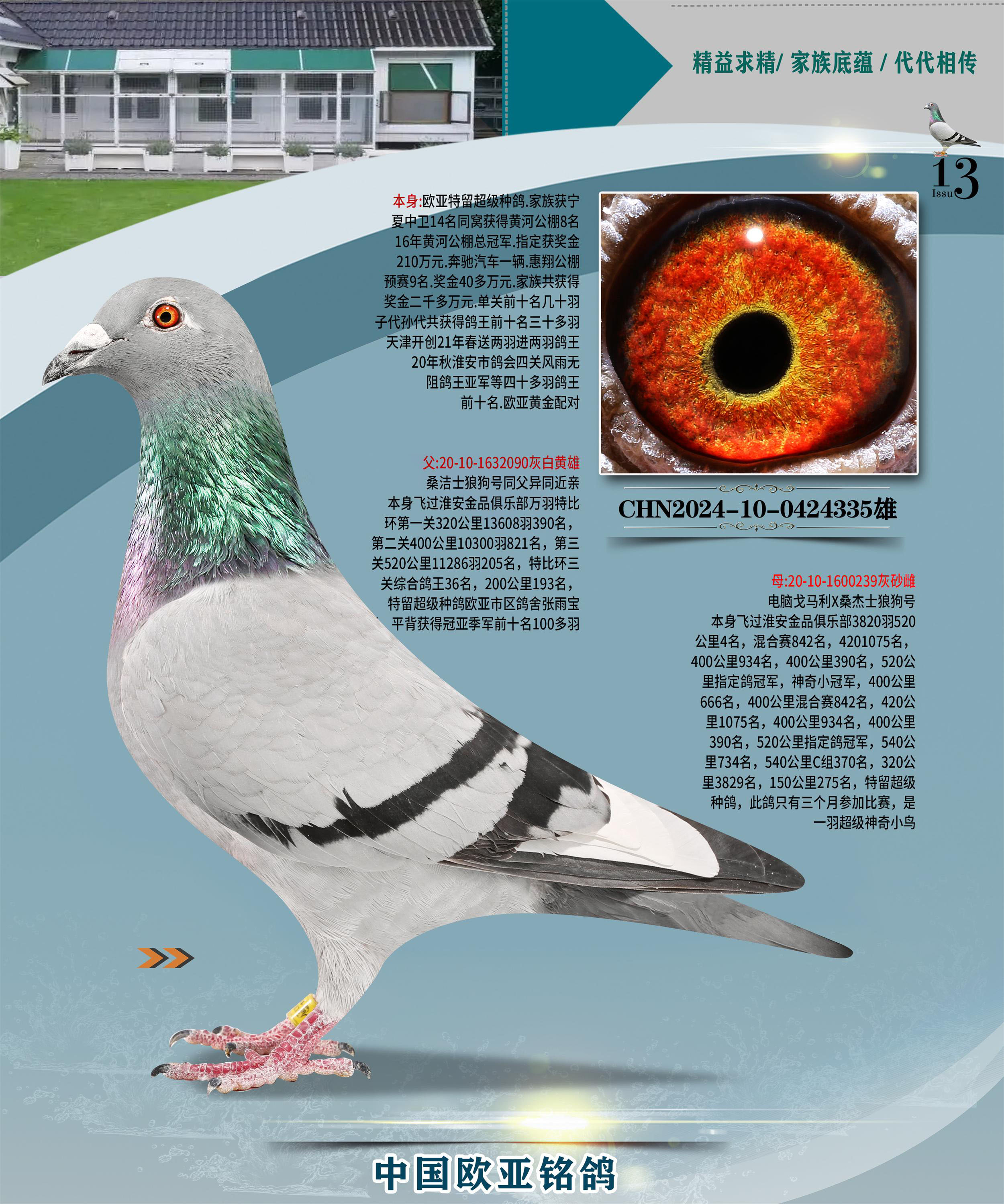 24年秋南京特比环欧亚荣获大团体冠军.小团体冠军551公里大特比13名.14名.16名.19名.20名.21名.24名.26名.27名.28名.42名.52名.54名.57名.65名.66名.68名.70名.71名.72名.74名.76名.80名.82名.83名.84名.85名.86名.90名.92名.110名.116名.121名.122名.128名.131名.158名.161名.164名.165名.166名.172名.174名.177名.182名.195名.196名.201名.205名.208名.210名.216名.253名.269名.275名.276名.294名.296名.299名,,24年秋云南天南铜都公棚决赛415名.天南铜都小棚决赛409名.云南玉活公棚决赛102名.490名.团体32名上笼二羽进二羽,天南铜都大棚506公里决赛445名。热烈祝贺河北省巨鹿县李兰生老师用欧亚泰山号血系连续十一年夺冠军,河北省国家赛冠军.全国季军等多次前十名高位,扬州王军王总用欧亚利奥24年春季获山东翔宇公棚决赛33名盖比53名。南京刘正龙刘总用欧亚盖比获得24年秋山东潍坊国际公棚决赛42名.精英赛30名.三关鸽王71名.决赛86名.加站赛16名.南京市特比环A组鸽王9名.B组鸽王5名.6名.C组鸽王5名.精英赛冠军4名.技能赛A组冠军4名.5名.秦淮区特比环荣获15名.46名.48名.87名。四川西昌徐亮徐总用欧亚利奥获得凉山州聚友决赛177名.第二关亚军双关鸽王19名.三关鸽王105名.云南豪庭公棚决赛603名。热烈祝贺24年四川重庆翔园鸽舍用欧亚泰山号荣获春季400公里冠军.秋季500公里冠军,河北王总用詹森X利奥获得千羽千翔公棚400公里冠军,广东蔡楷焕荣获24年秋爱好者 赛鸽俱乐部三关鸽王季军.一关420公里99名.二关450公里11名.三关520公里32名.单关季军.7名.12名,江西李卫兴荣获贵州红枫公棚8名.共翔俱乐部寄养棚四关综合鸽王30名.一关400公里78名.二关500公里55名.三关520公里37名.四关500公里57名.同父母获公棚18名.雷鸣获得武汉黄浦育翔中心冠军,四川陈文获得四川明鸿俱乐部300公里梦幻2名.3名.4名.9名.10名.13名.14名.15名.31名.34名.40名.41名.42名.43名.69名.71名.72名.73名.74名.94名.95名.97名.98名.99名.419公里决赛荣获总冠军7名.总共归巢9羽,四川徐亮获豪庭决赛603名,山西郑勇获得山西泰鑫公棚决赛255名詹森红狐,热烈祝贺马总获得开尔(飞跃队)决赛9名获奖金1310000万元.第一关52名,天津津福资赛180公里96名.获奖金429543万元,欧亚支持全国鸽友24年秋多人报喜 祝大家取得更好成绩,给欧亚报喜鸽友欧亚决定给每人赠送一羽超级种鸽。欧亚俱乐部特比环多关鸽王成绩:15年秋淮安特比环黑色星期一全会上笼9700多羽,当天无鸽归巢,第二天全会归巢357羽,本舍归巢158羽.前十名八羽.前一百名归巢57羽,16年春季获五关鸽王总冠军,总亚军四名.六名.七名.九名.十名.晶艺俱乐部520公里冠亚季军5名.6名.7名.9名.11名等,火车头冠军.季军6名.8名.9名.10名,16年秋晶艺俱乐部特比环520公里亚军.季军4名.6名.7名.9名,15年春南京白下特比环冠军.亚军.季军6名.7名.8名.9名.10名.指定鸽A B组获得冠军.亚军.季军4名.5名.,17年淮安特比环亚军.4名.5名.7名.8名.10名.六关鸽王总冠军.4名.6名.9名.10名,寄养棚宿迁刘总20羽特比环获冠军.季军.4名.7名.8名.9名等。18年荣获万羽特比环六关鸽王总冠军.总亚军.总季军.6名.8名.十名.单关四羽冠军.二羽亚军.四羽季军.前十名27羽。19年秋万羽特比环六关鸽王总亚军.总季军.5名.8名等,单关二羽冠军.三羽亚军.一羽季军前十名31羽。20年秋淮安市鸽会四关特比环大赛风雨无阻鸽王亚军.鸽王六名,金品俱乐部万羽特比环六关鸽王总冠军,总亚军.四名.五名.六名.七名.八名.十名.前二百名鸽王35羽,单关冠亚季军前十名四十多羽,火车头五关鸽王季军.六名.八名.前二百名鸽王十七羽。20年春荣获淮安五区一市四关鸽王总冠军.亚军.四名.八名.九名。21年秋荣获金品万羽特比环大赛六关鸽王总亚军.总季军.四名.七名.九名.十名.单关冠亚军季军前十名三十多羽。火车头协会鸽王六名.七名.十名.单关前十名十七羽。22年秋荣获鸽王总冠军.总亚军.5名.7名.8名.9名.11名.单关冠亚季军前十名三十多羽,第一关单关前二百名四十多羽,第二关前二百名三十多羽,第三关前二百名四十多羽,第四关前二百名四十多羽,第五关前一百名53羽。23年秋荣获鸽王季军.五名.八名.十名.13名.17名.20名.27名等多羽鸽王.单关前十名二十多羽。公棚.寄养棚部分成绩:16年秋宁夏黄河公棚总冠军电脑戈马力指定通炮冠军,17年送八羽参赛获得鸽王八名进奖四名,支持韩总荣获八名。支持鸽友荣获宁夏中卫公棚决赛总冠军.精英赛冠军,支持18年宁夏黄河公棚决赛冠军詹森X泰山。安徽鼎博寄养棚院内外四关鸽王总冠军.鸽王十七名.三十七名同窝,鸽王39名.42名.58名.67名。18年山东公棚预赛冠军.决赛65名.送八羽进奖五羽.指定获奔驰汽车一辆。支持鸽友获得云南蓝云公棚冠军.盖比X佛卡门。支持鸽友荣获云南银集公棚决赛冠军 詹森427X520血系 速度赛6700羽冠军。17年荣获金马俱乐部寄养棚四关鸽王总冠军.季军.六名.八名.第一关冠军.亚军.季军四名.七名.十一名.金牌教练奖。支持鸽友18年北京费翔公棚预赛九名电脑X桑杰士,支持鸽友荣获陕西威力公棚决赛11名.内蒙古临河寄养棚四关鸽王六名.詹森配泰山,支持河北王总用欧亚詹森427配胡本喜获20年秋开尔青年棚季军。云南东荣公棚16年预赛冠军.决赛77名.17年决赛12名.詹森红狐X泰山,17年平安公棚决赛4名 詹森427。欧亚获得21年金母寄养棚第一关四名.第二关5名.第三关5名.6名.7名.10名.三关鸽王总冠军,四关鸽王14名.十羽鸽王。支持河