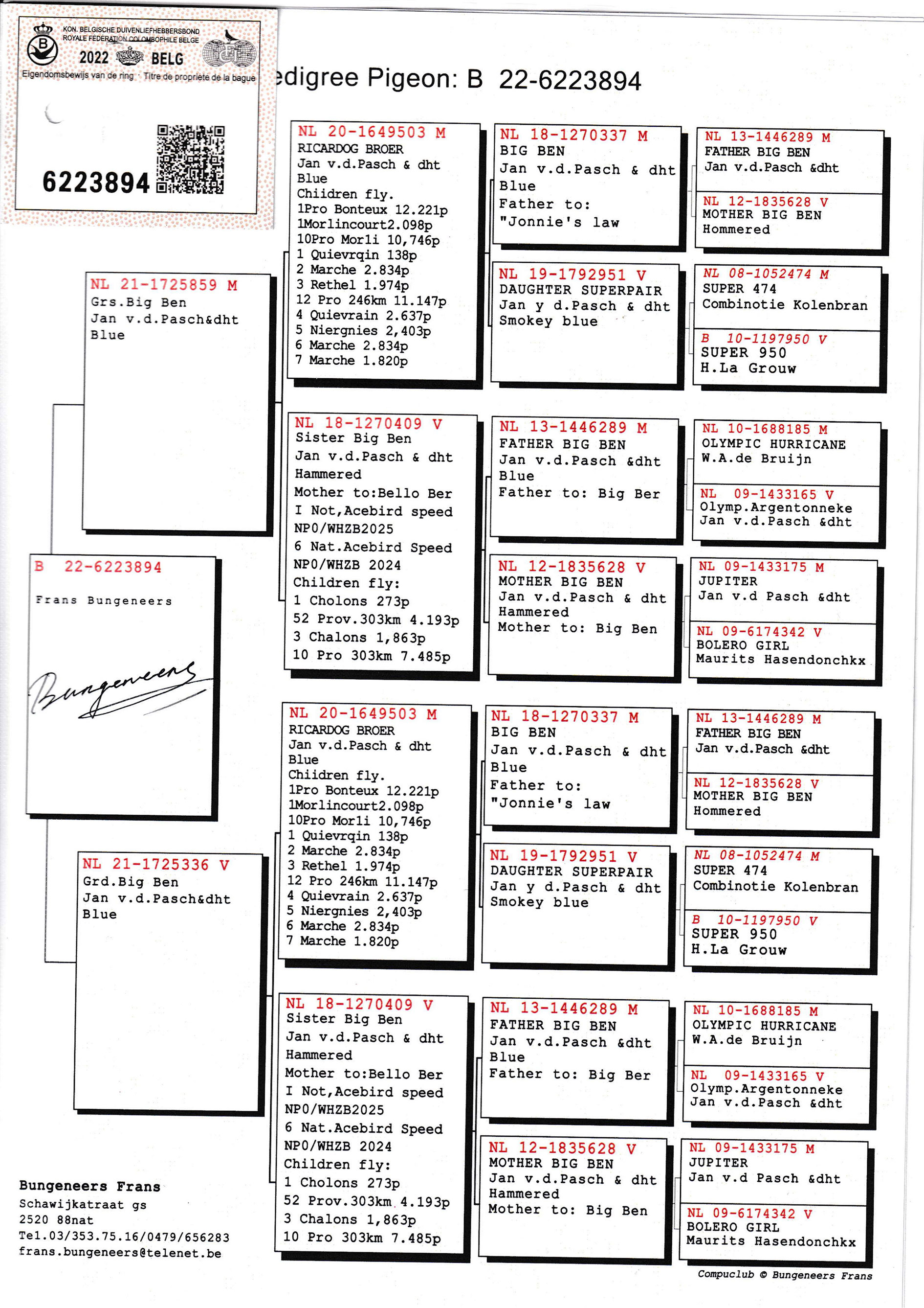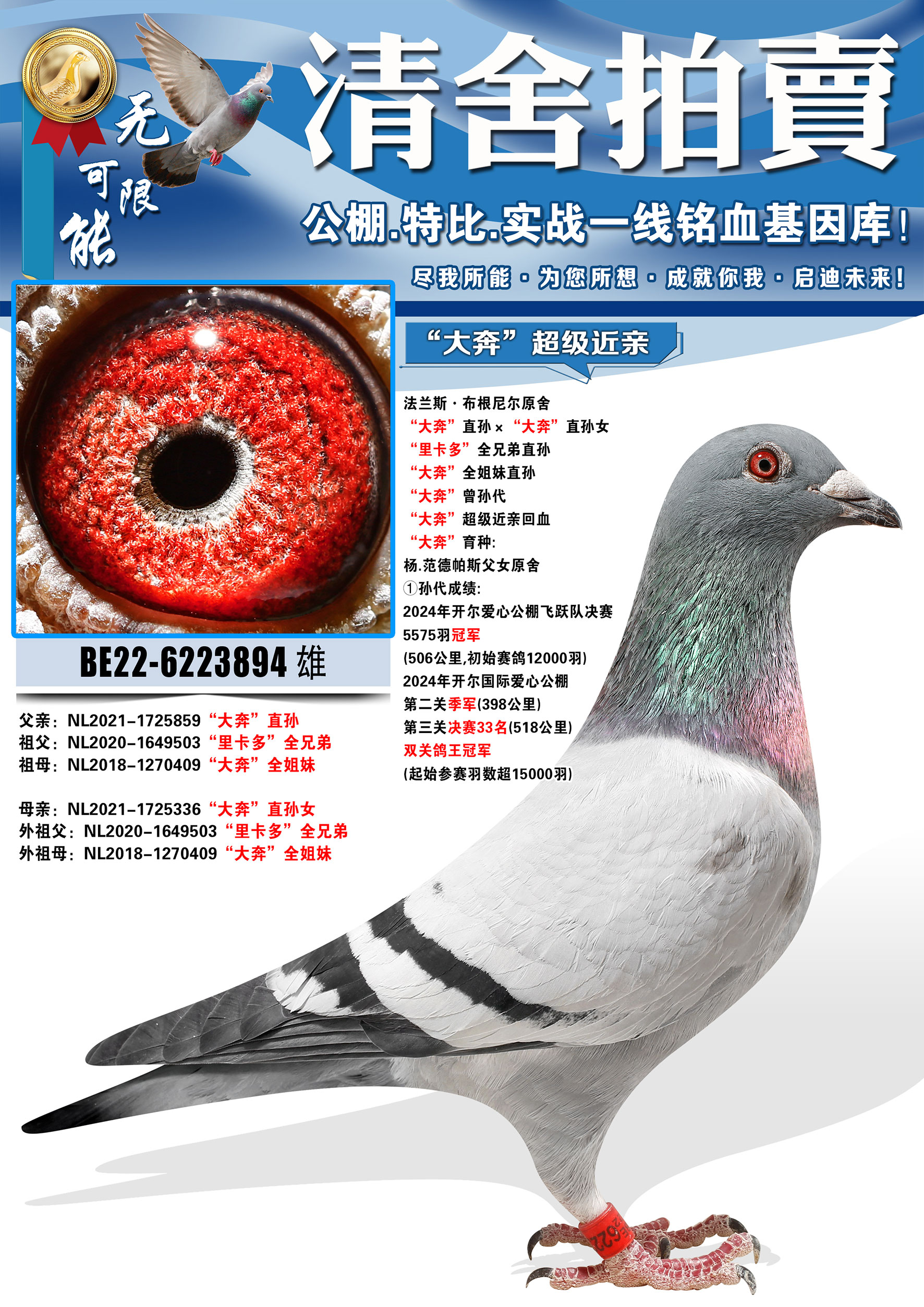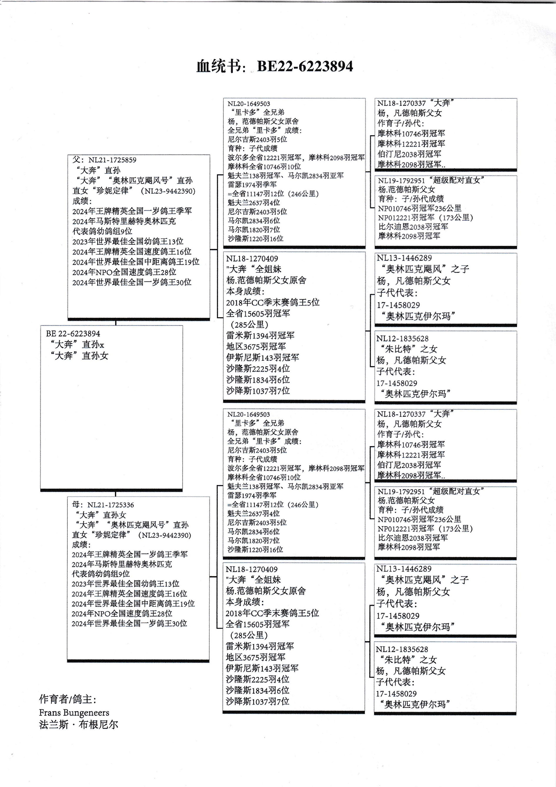所有拍卖鸽全部血统真实!!个人鉴鸽观点不一,飞不飞天上见.血统成绩第一