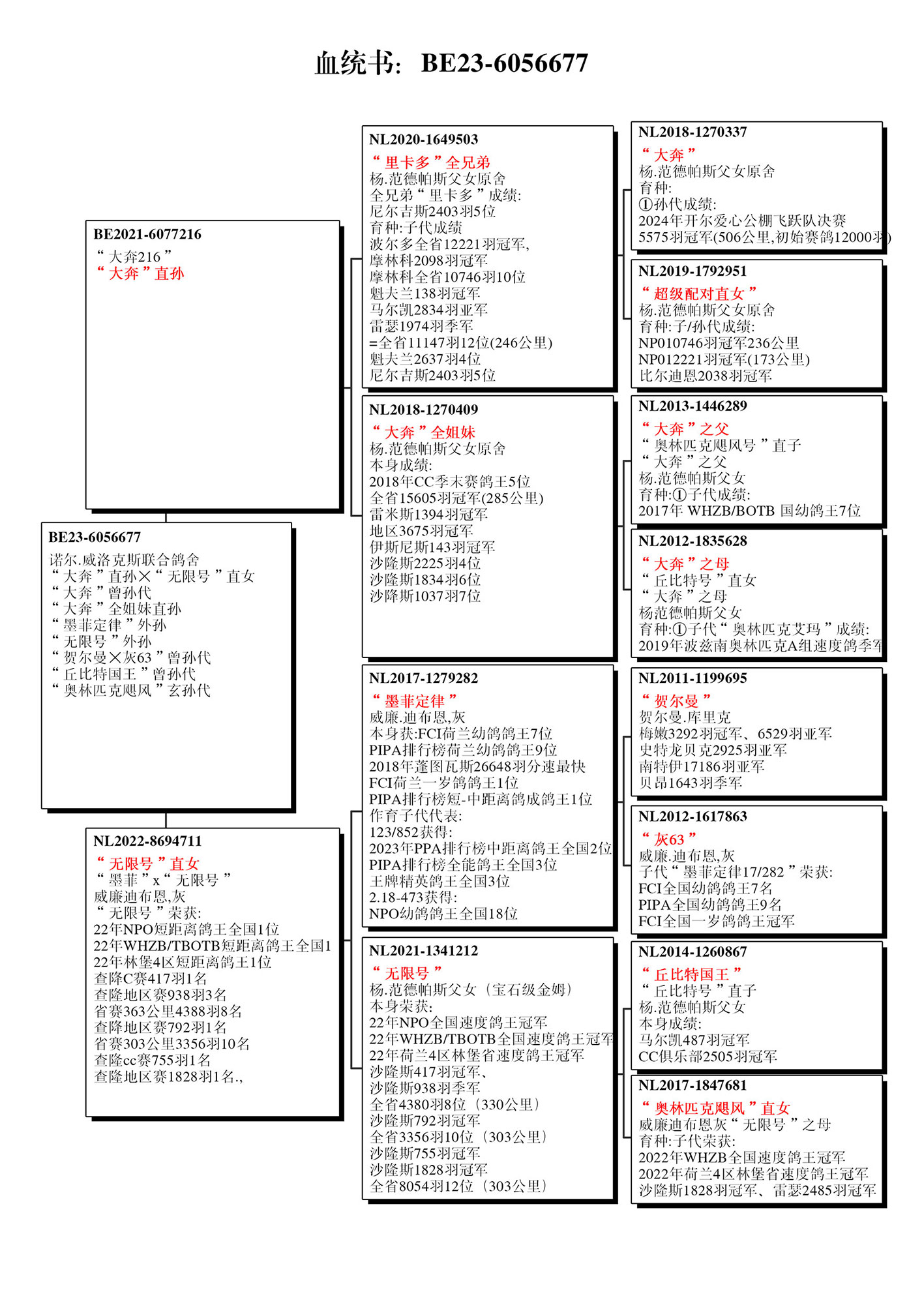 所有拍卖鸽全部血统真实!!个人鉴鸽观点不一,飞不飞天上见.血统成绩第一