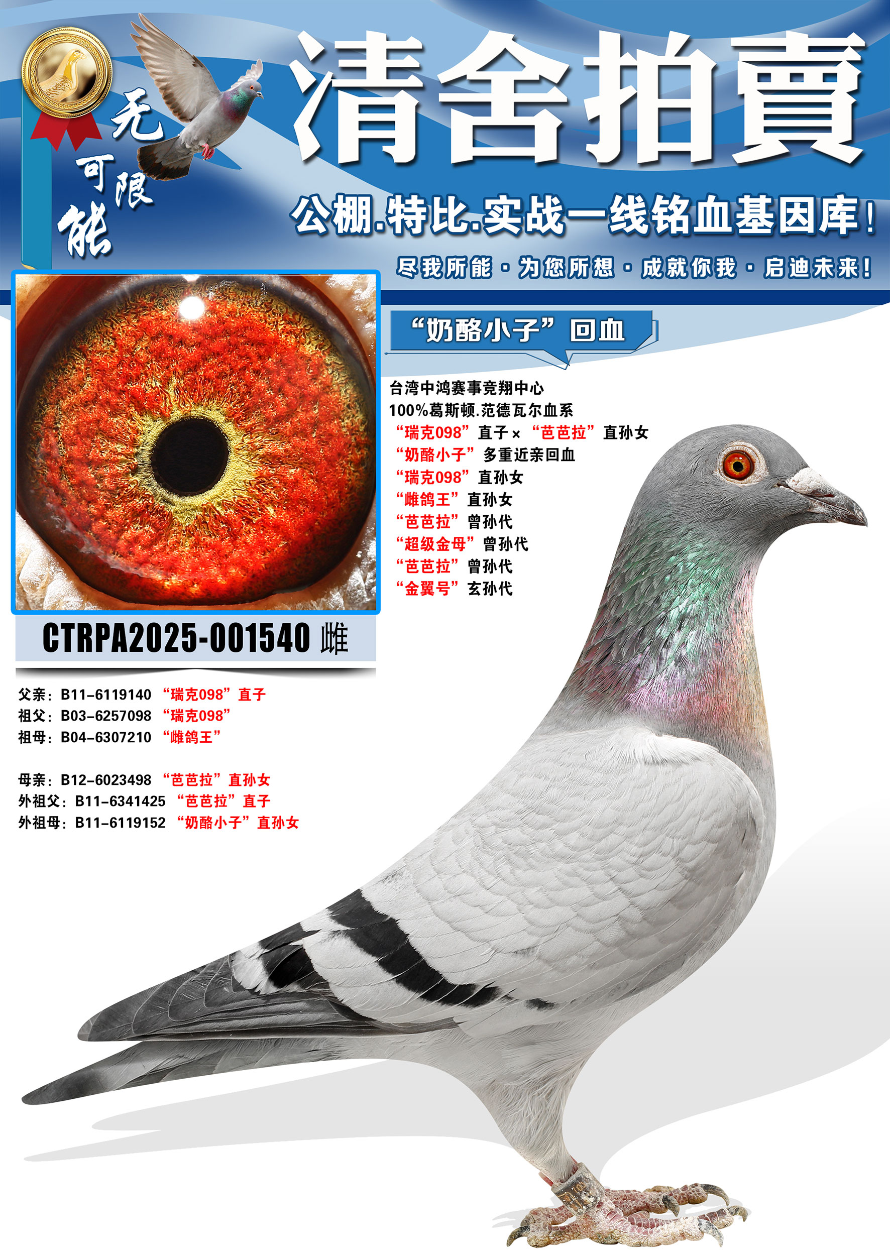 所有拍卖鸽全部血统真实!!个人鉴鸽观点不一,飞不飞天上见.血统成绩第一