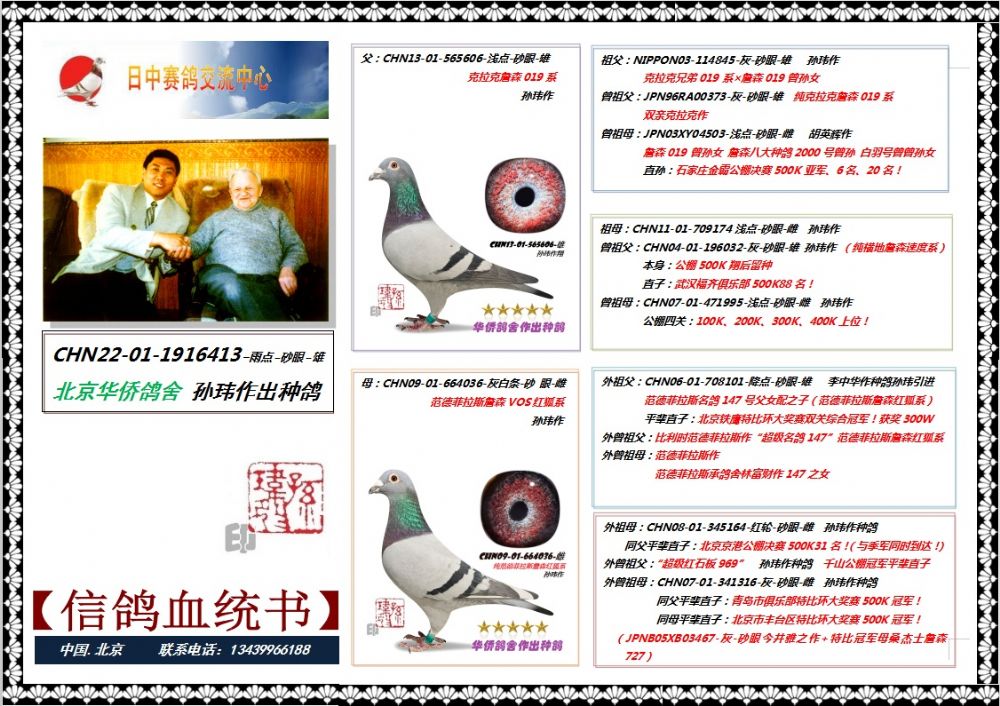 - 当前查看拍卖鸽:3号--詹森系回血种鸽22-01-191