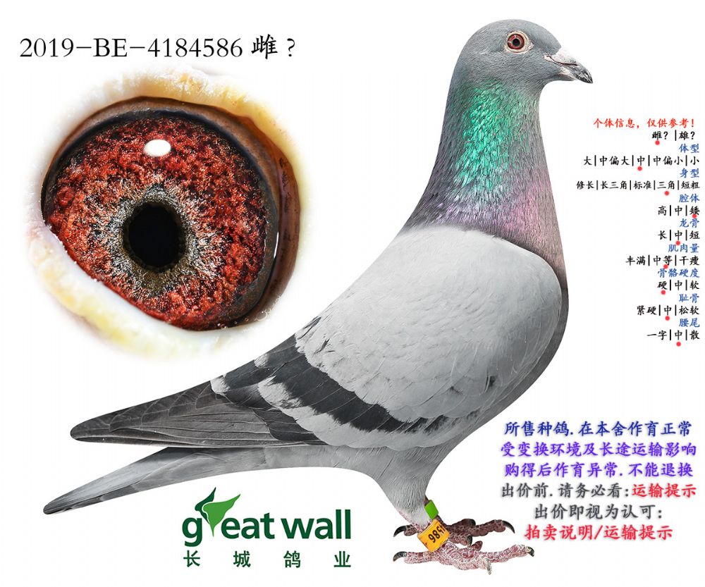 因拍卖鸽均是未做育过的种鸽或幼鸽,图内所标雌雄仅供参考,实际性别已实物为准。不做退换理由。