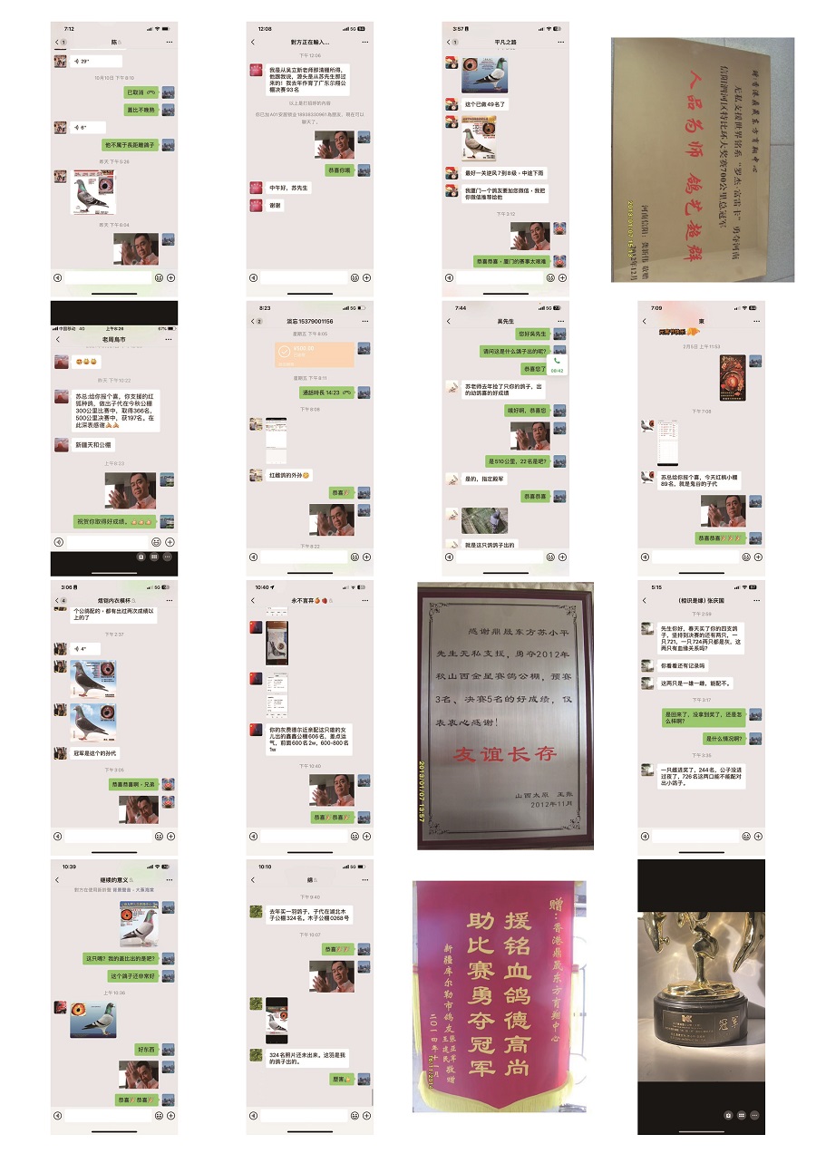 祝福建寧德鴿友林永生先生使翔狄爾巴配修司肯勇奪福安市博承雛鴿俱樂部501公裏決賽12位山東肥城鴿友張慶國先生代卦黃世昌蓋比血系幼鴿勇奪山東新泰瑞浩公棚決賽480公裏244位湖南益陽鴿友龍輝先生使翔狄爾巴「第一滴血」血系勇奪益陽鴿協530公裏296位