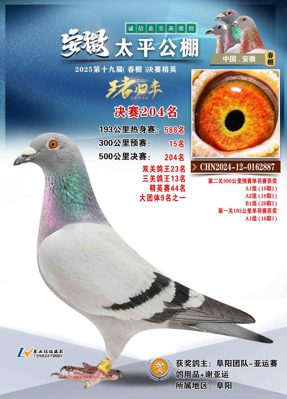 - 鸽主姓名:阜阳团队-亚运赛鸽用品+谢亚运