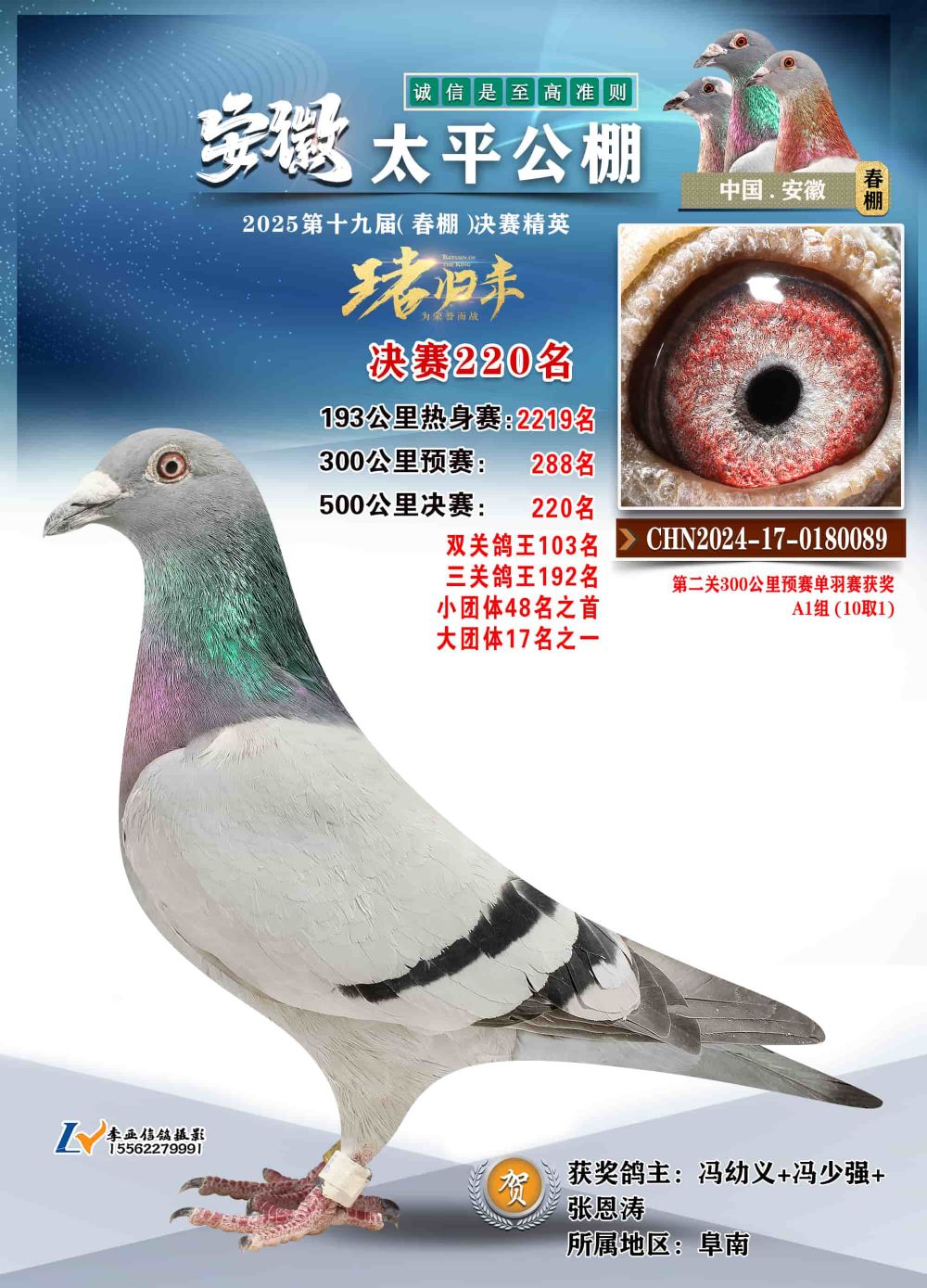 - 鸽主姓名:冯幼义+冯少强+张恩涛