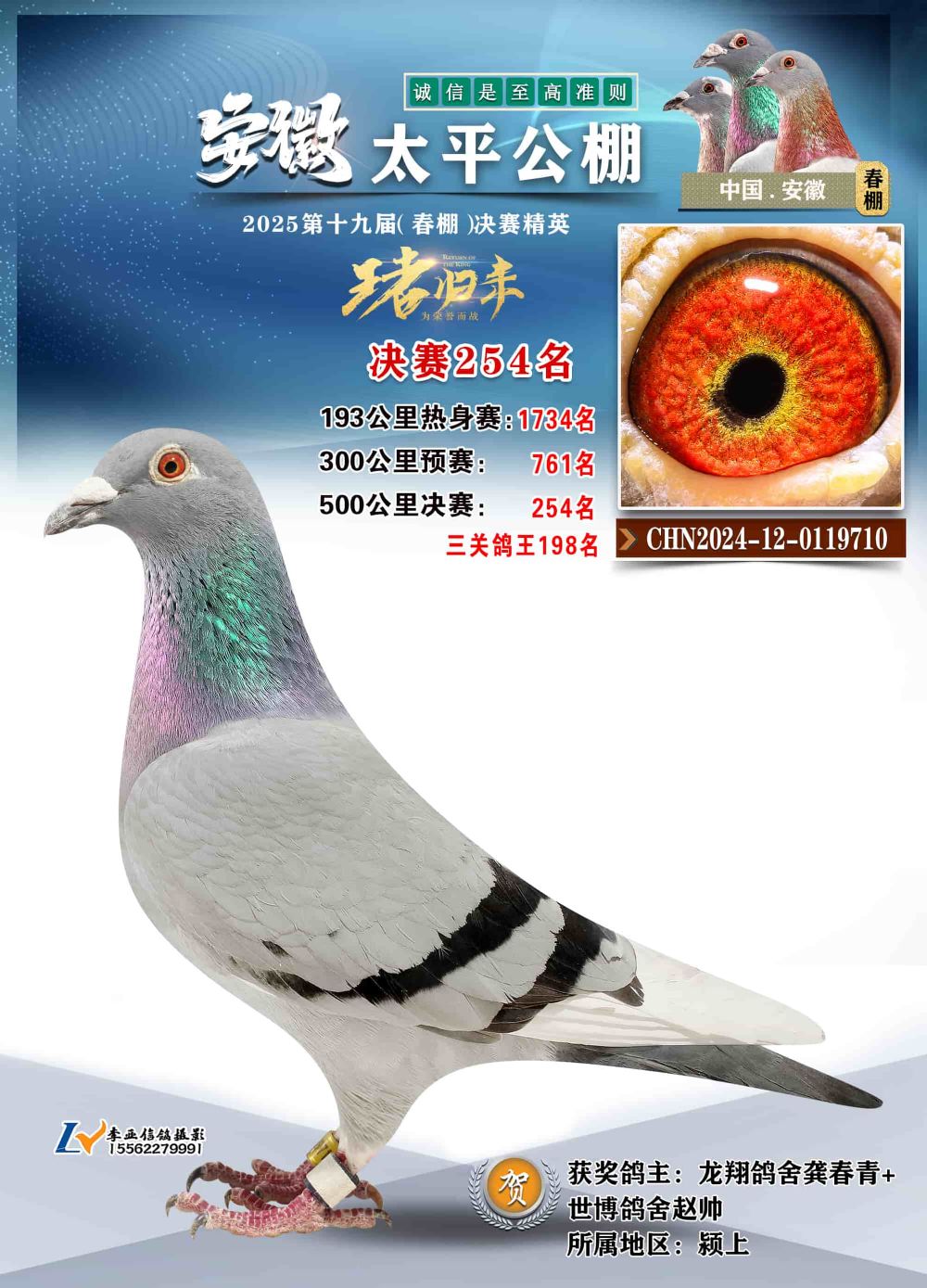 - 鸽主姓名:龙翔鸽舍龚春青+世博鸽舍赵帅