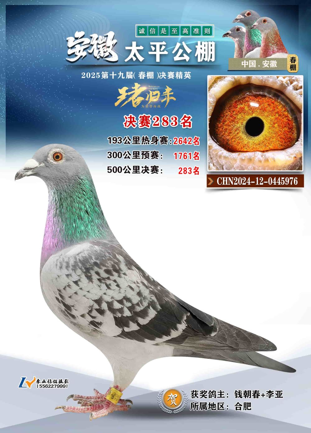 - 鸽主姓名:钱朝春+李亚