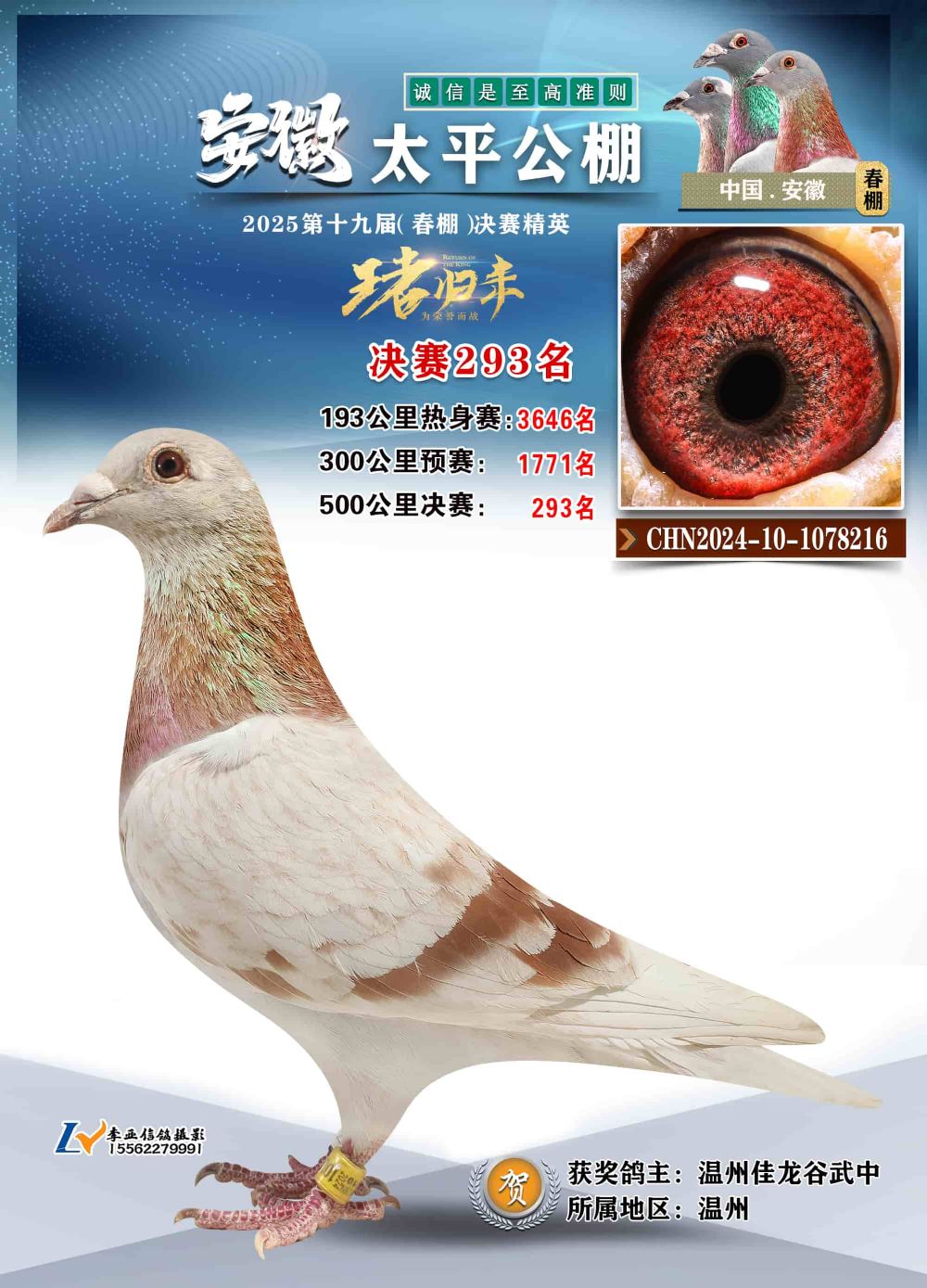 - 鸽主姓名:温州佳龙谷武中