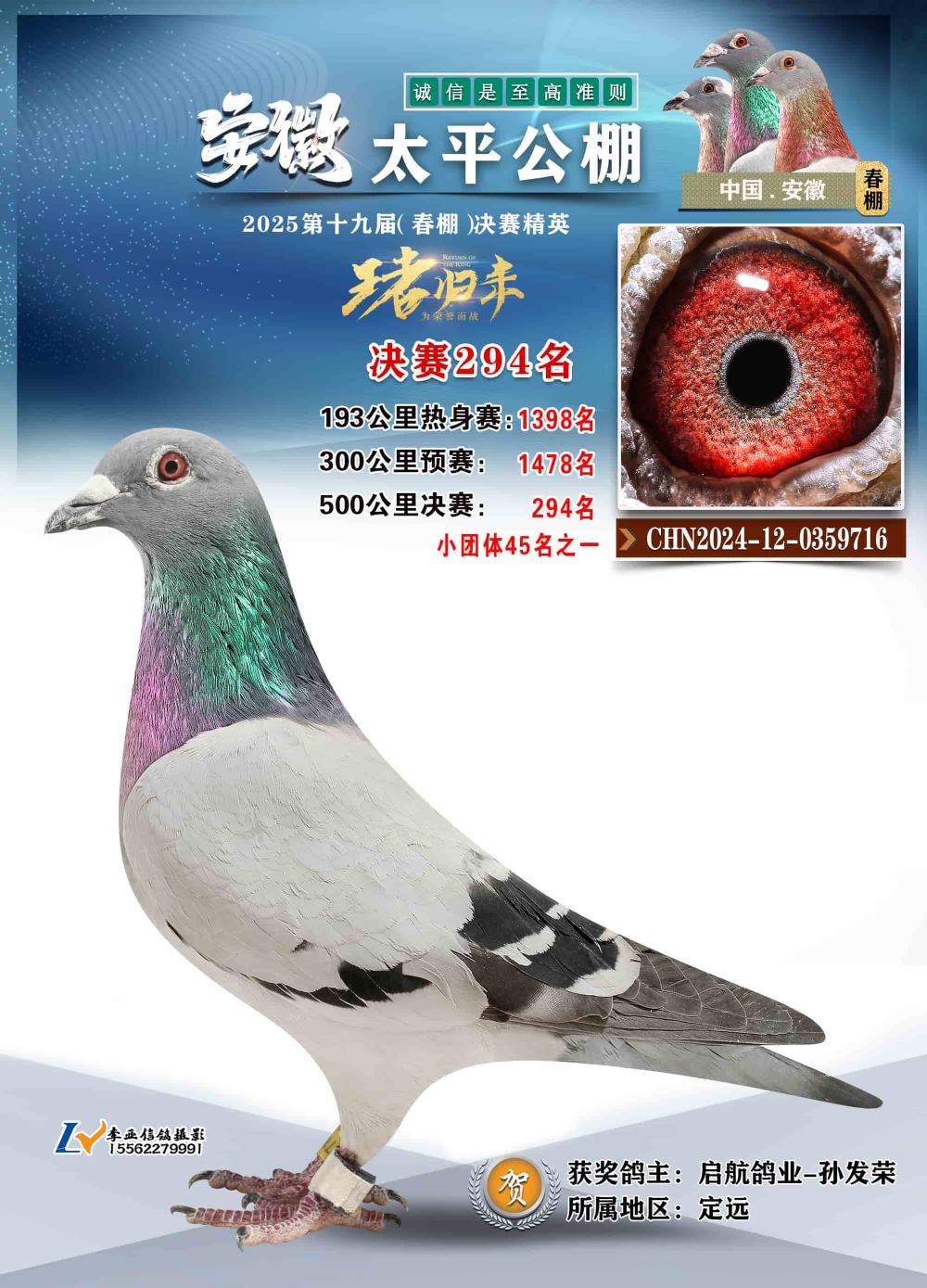 - 鸽主姓名:启航鸽业-孙发荣