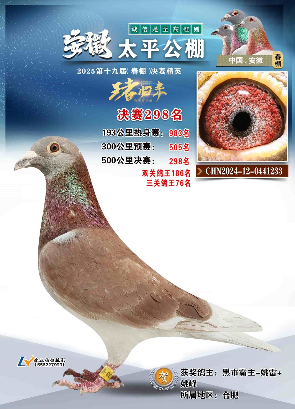 - 鸽主姓名:黑市霸主-姚雷+姚峰