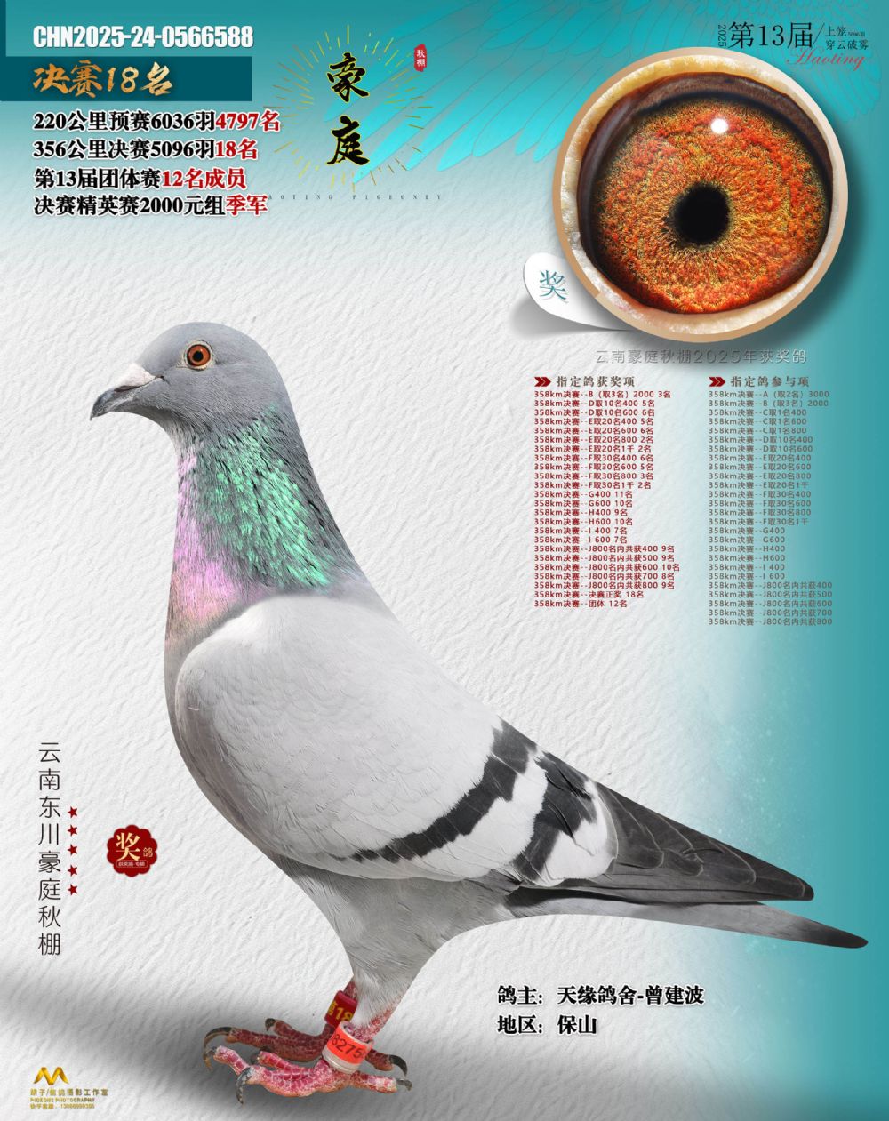 • 鸽主姓名:天缘鸽舍-曾建波